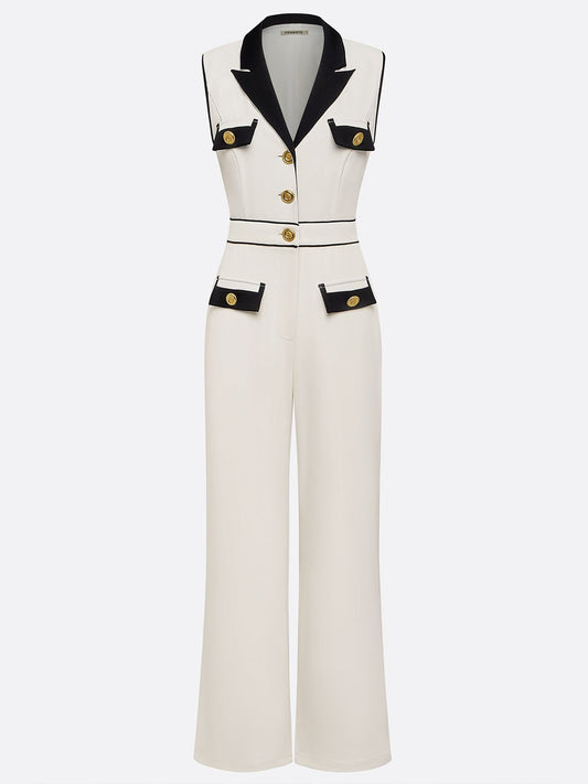 Combinaison Ceinturée à Col V Boutonnée Femme