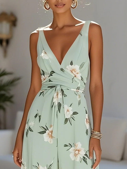 Combinaison Maxi à Épaules Dénudées Imprimé Fleuri pour Femme