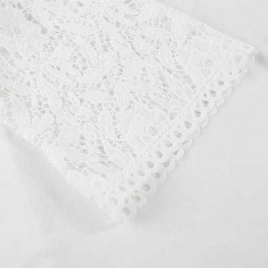 Elégant chemisier blanc en dentelle avec col rond et manches