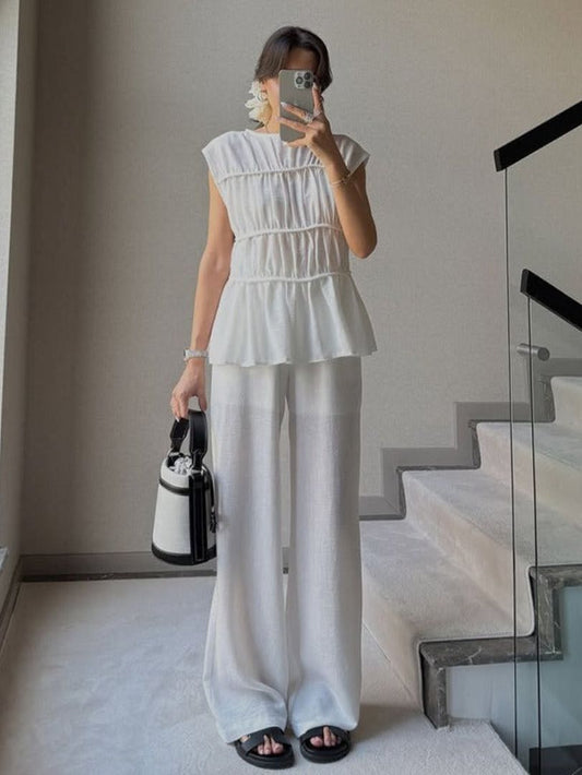 Ensemble 3 pièces pour femme : cardigan, top et pantalon large