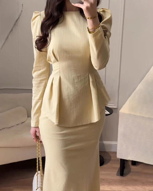 Ensemble deux pièces décontracté en coton et lin avec fente chic