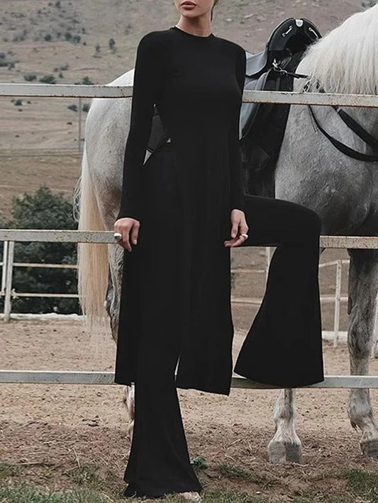 Ensemble haut long fendu et pantalon évasé moulant