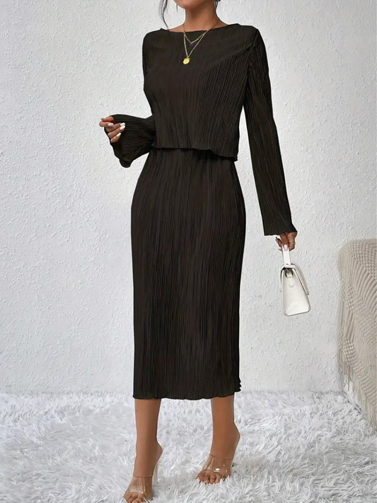 Ensemble Haut Court À Manches Longues Jupe Midi pour Femme