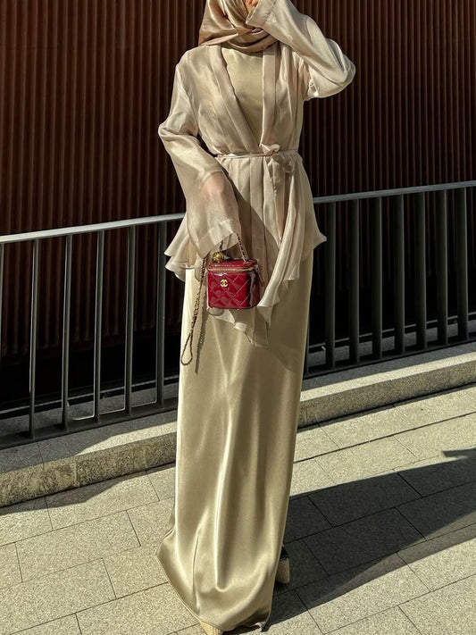 Ensemble Jupe Satinée Asymétrique à Épaule Femmes