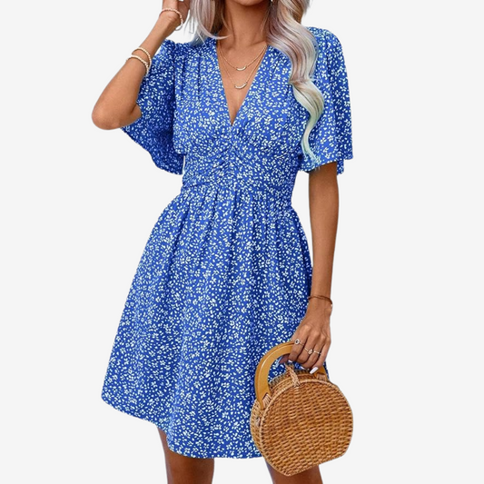 Evarine™ - Robe à Épaules Tombantes et Imprimé Cartes