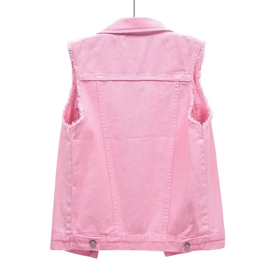 Gilet en jean sans manches pour femmes avec motif floral dans un style estival vintage