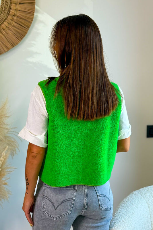 Gilet Teddy Giselyne Jaune Fluo Manches Longues Avec Capuche