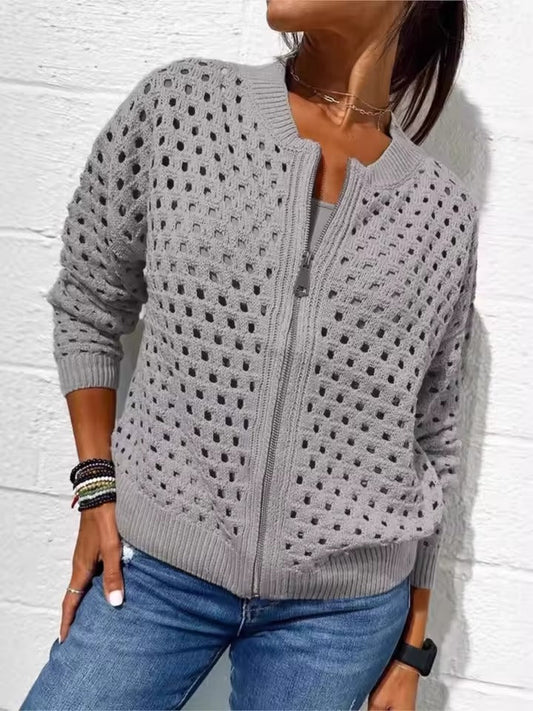 Veste zippée texturée pour femmes Élégante superposition quotidienne
