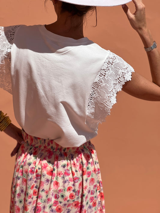 T-shirt D'été À Manches Courtes Avec Dentelle