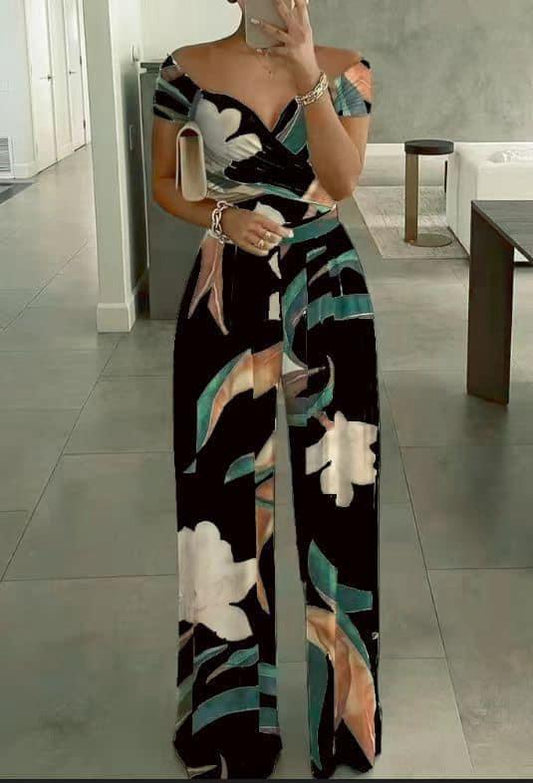 Tenue estivale élégante pour femme avec pantalon bouffant et chemisier boutonné à manches longues