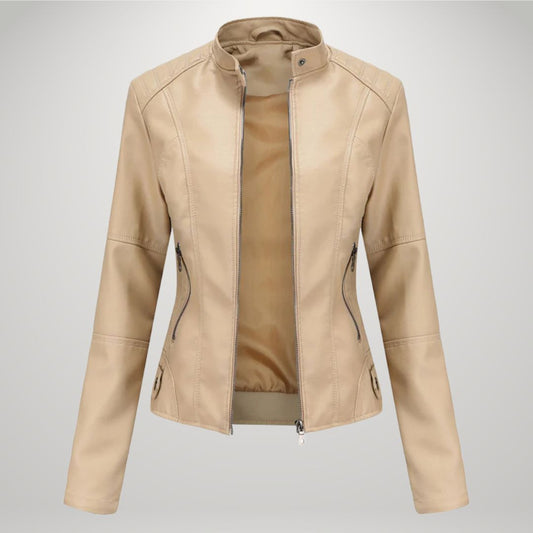 Veste en cuir synthétique bordeaux avec revers élégant et détail zippé