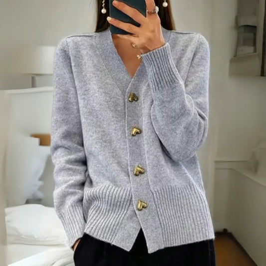 Cardigan élégant à gros boutons pour l'automne et l'hiver