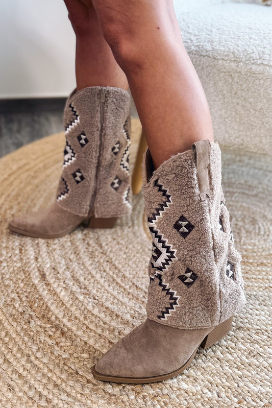 Bottes à talons compensés montantes doublées en fausse fourrure douillette