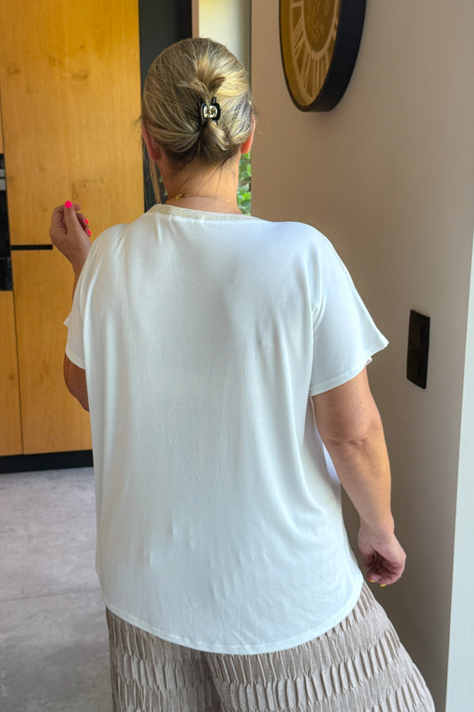 T-shirt uni à manches courtes pour femme avec impression à chaud et ourlet effiloché