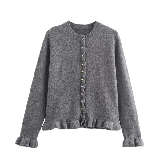Cardigan à boutons pour femmes avec volants, haut superposé chic
