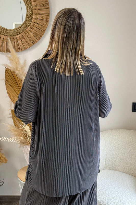 Chemisier élégant avec fermeture à boutons et pantalon à jambes larges