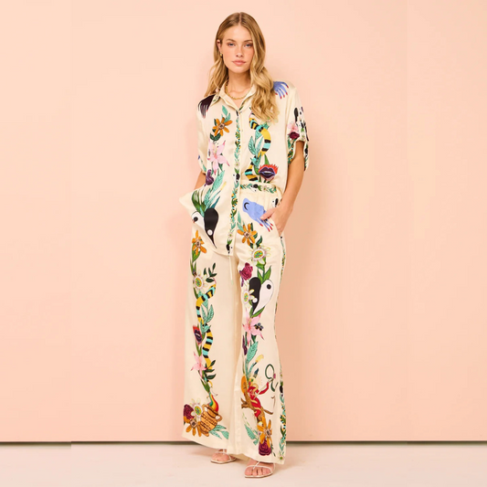 Ensemble Chemisier Stylé et Pantalon Imprimé pour Femmes