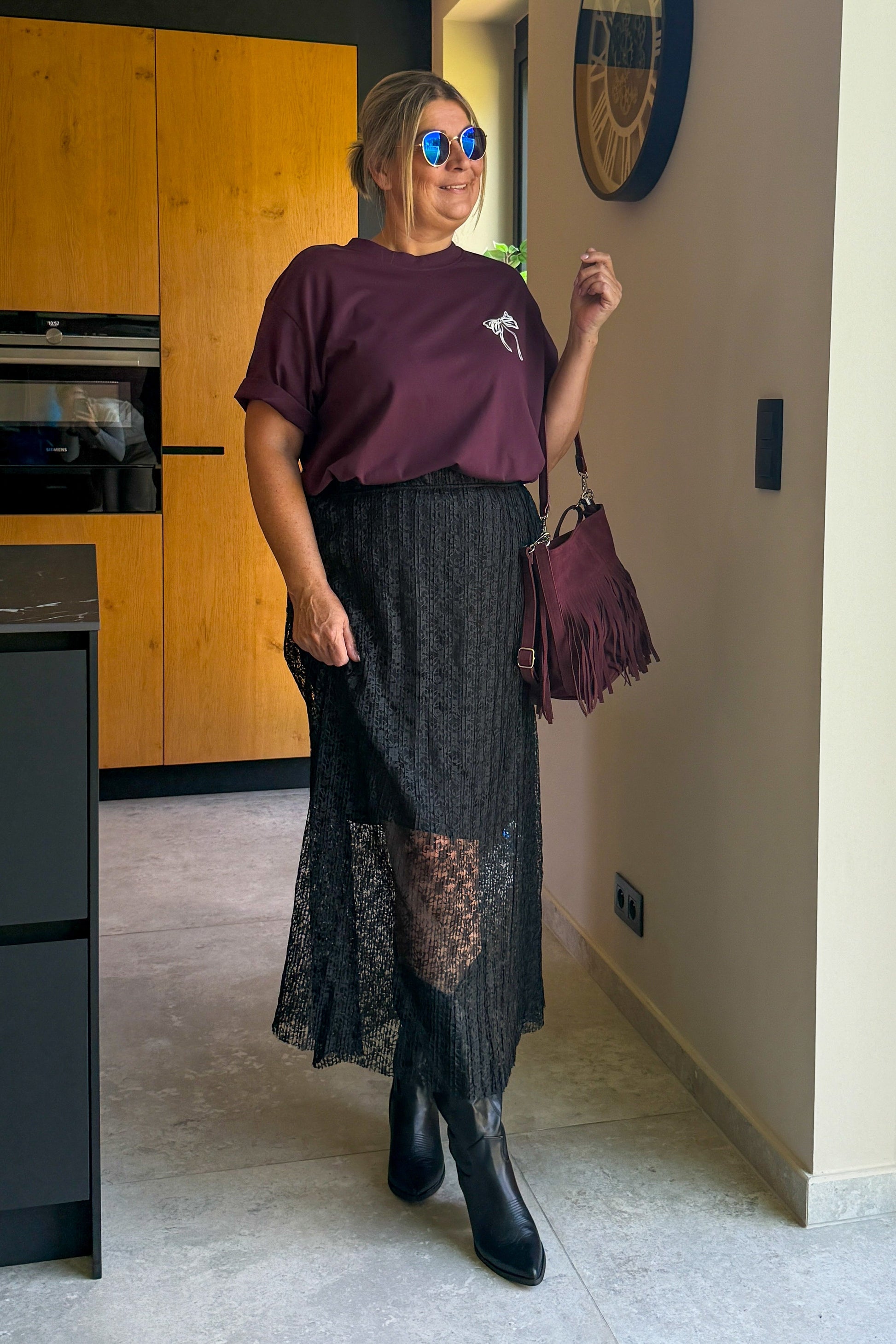 Le mannequin fait un XL porte un S (42/44) et mesure 1M75