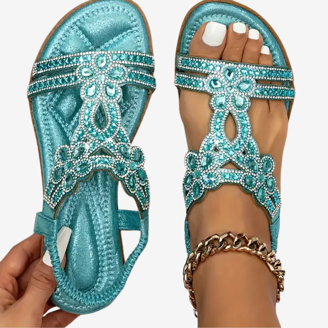 Ambreline™ allie élégance estivale et confort absolu. Ces superbes sandales bohèmes sont ornées de pierres précieuses scintillantes et conçues pour accompagner chacun de vos pas grâce à un soin orthopédique doux. Que vous partiez en balade au bord de mer, que vous alliez à un festival ou que vous souhaitiez simplement rayonner en faisant vos courses, Ambreline™ vous offre l'éclat et le maintien que vous méritez.