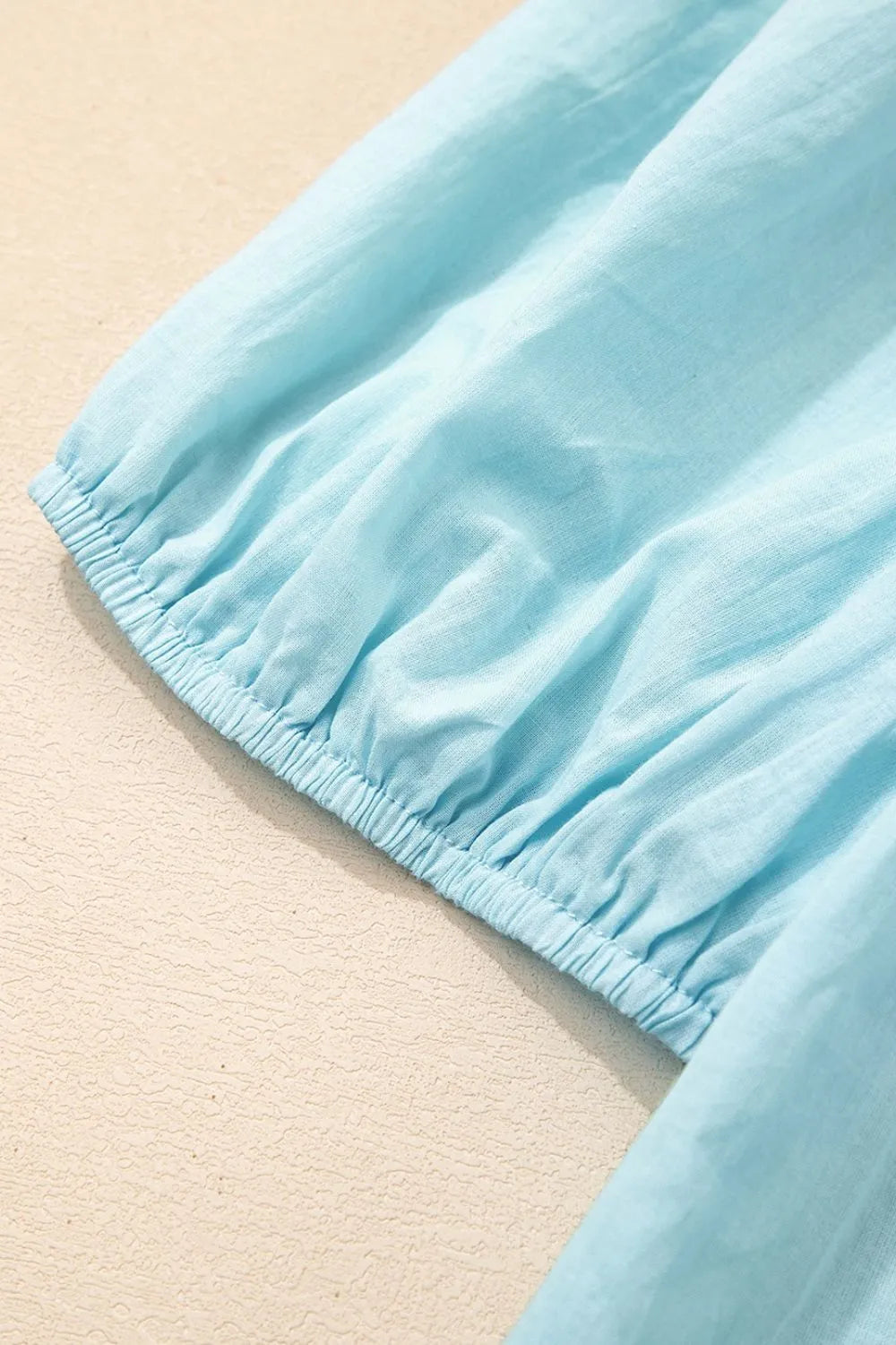 Blouse à manches bouffantes avec bordure en dentelle à œillets pour femmes