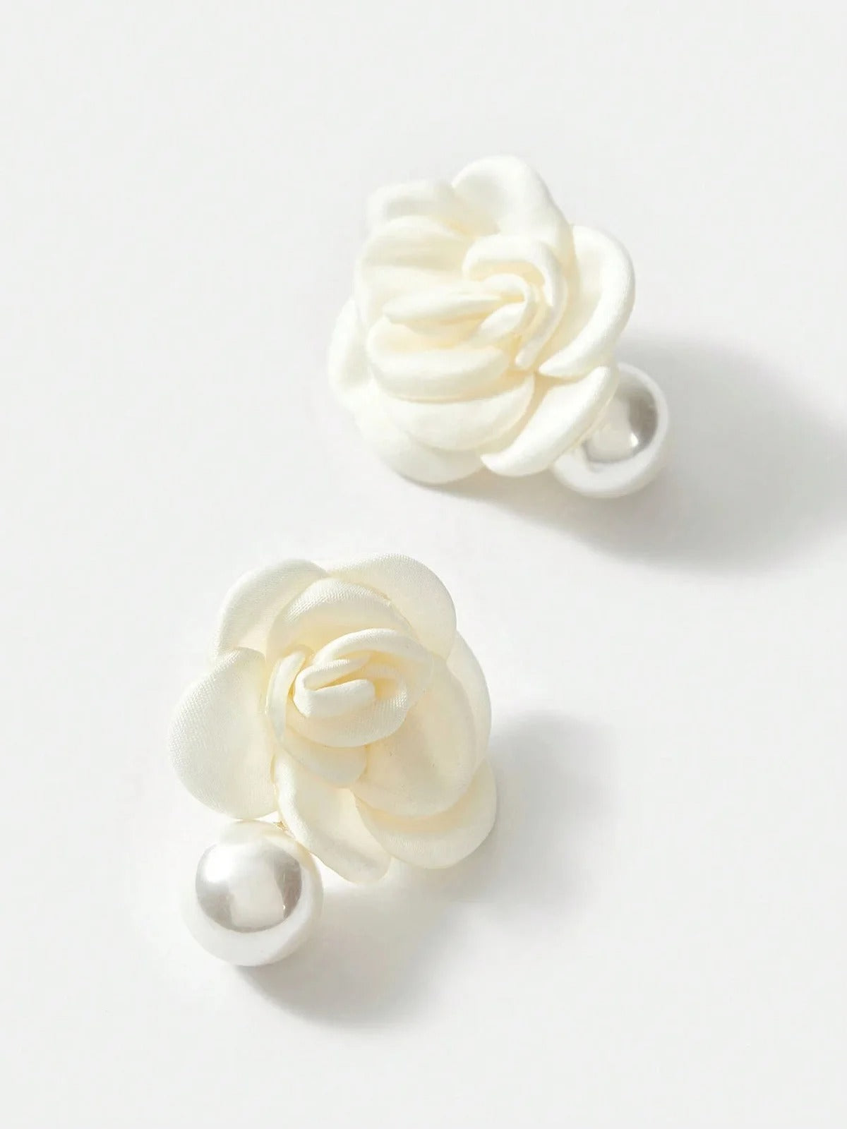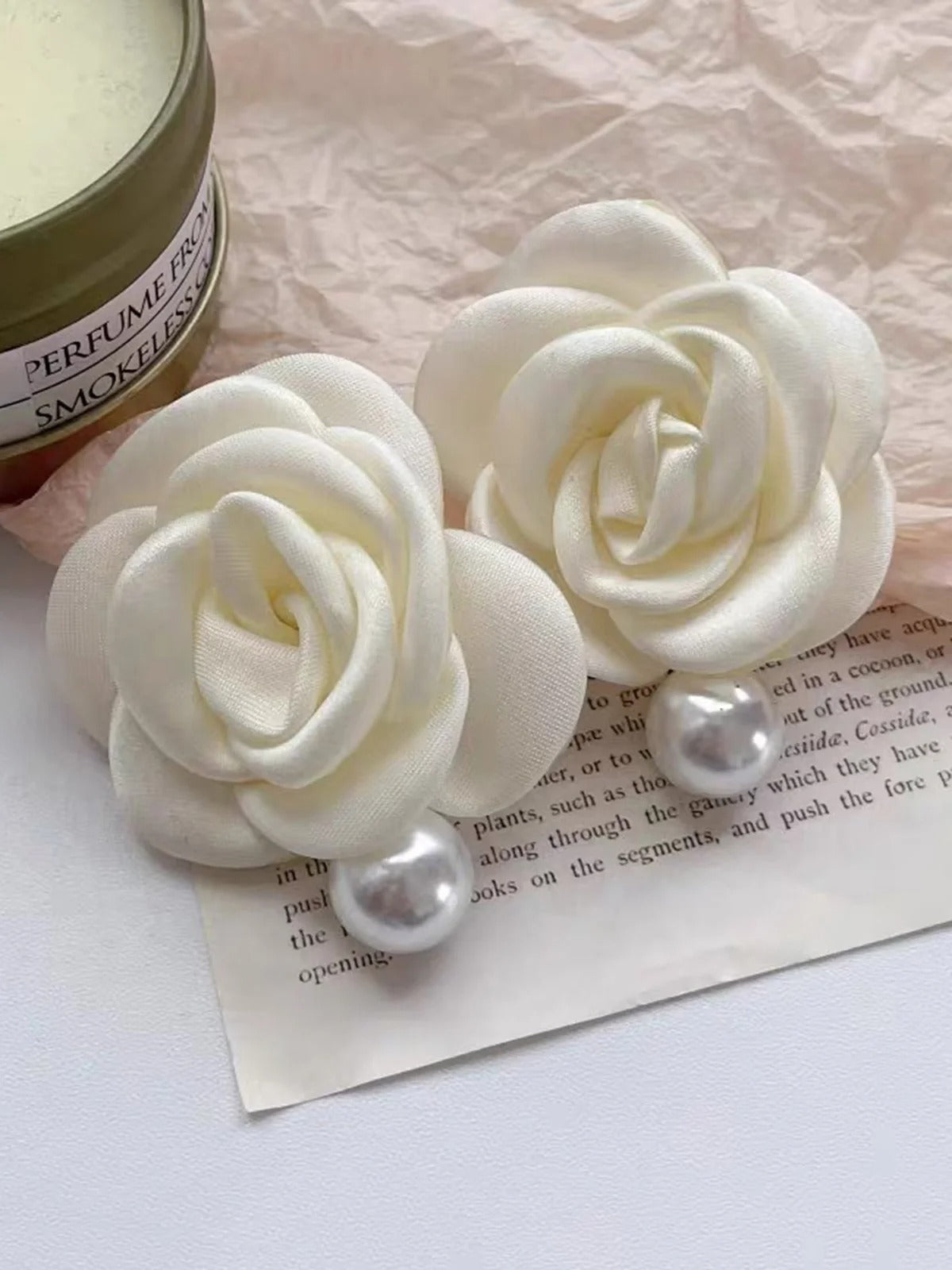 Boucles d'oreilles pendantes élégantes en imitation de perles et fleurs