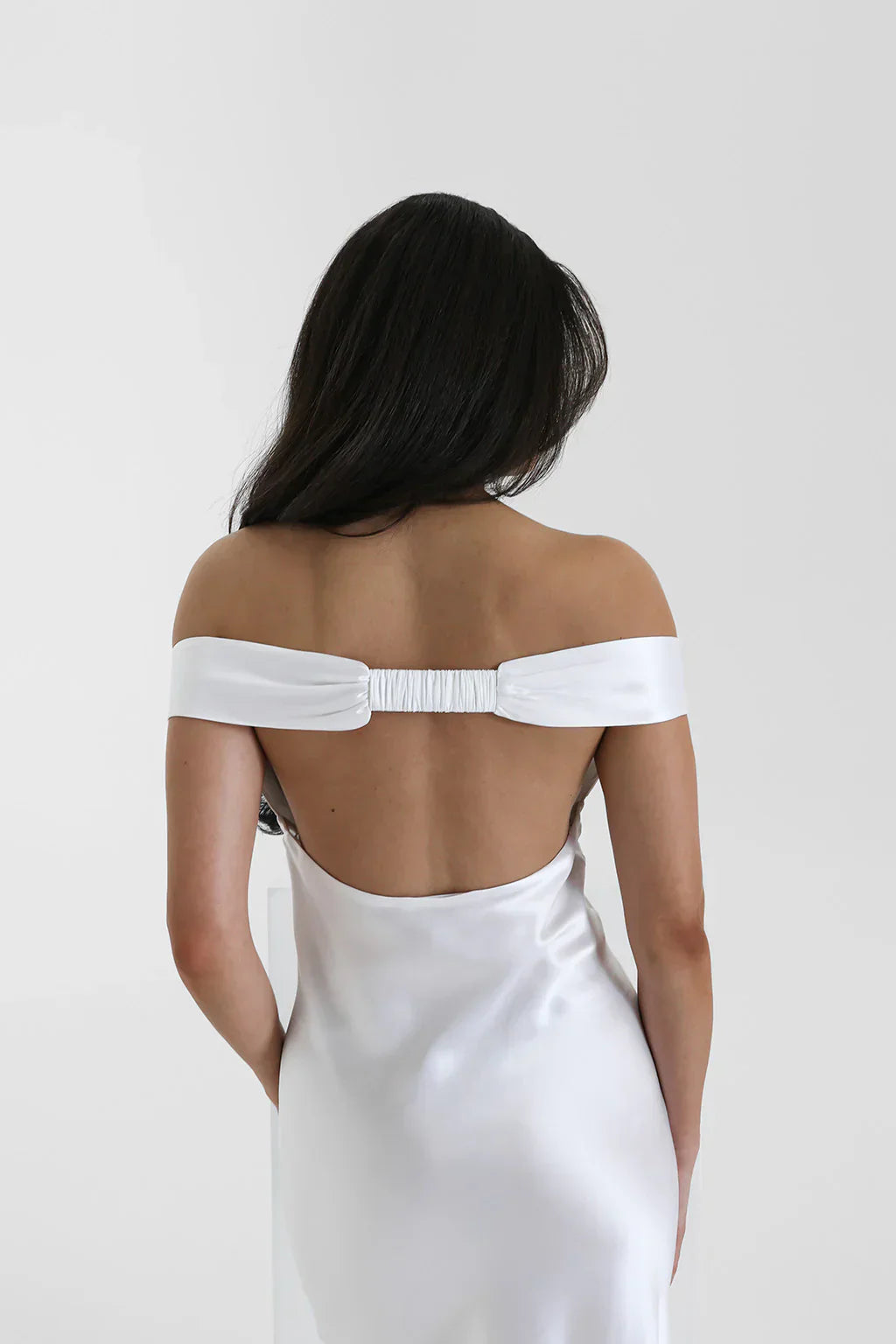 Adoptez l'élégance avec notre élégante robe de soirée en satin pour femme, dotée d'un superbe décolleté épaules dénudées. Son luxueux fini satiné et son élégant plissé flattent votre silhouette et lui confèrent une touche vintage glamour. Idéale pour les mariages, les occasions formelles ou les soirées spéciales, la robe Bridget transforme chaque instant en un moment inoubliable. Laissez-vous séduire par sa beauté intemporelle et sa coupe confortable, et faites tourner les têtes où que vous alliez ; cette robe est la compagne idéale pour des souvenirs inoubliables.