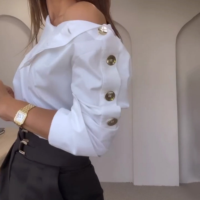 Haut boutonné latéral confortable de couleur unie chic