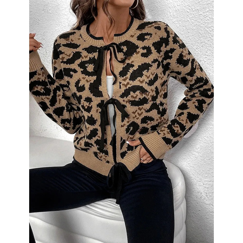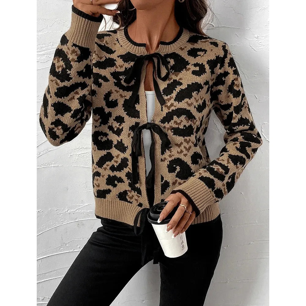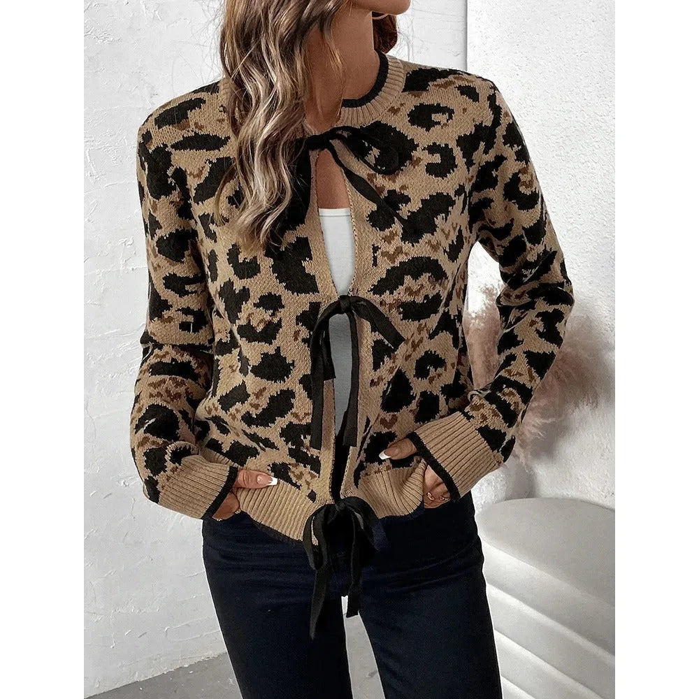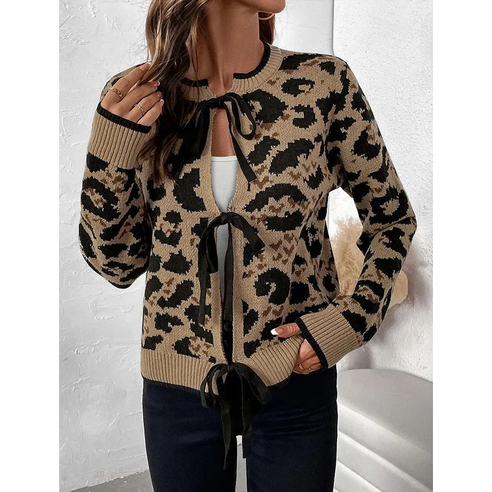 Capucine® | Cardigan Léopard avec Nœuds Élégants