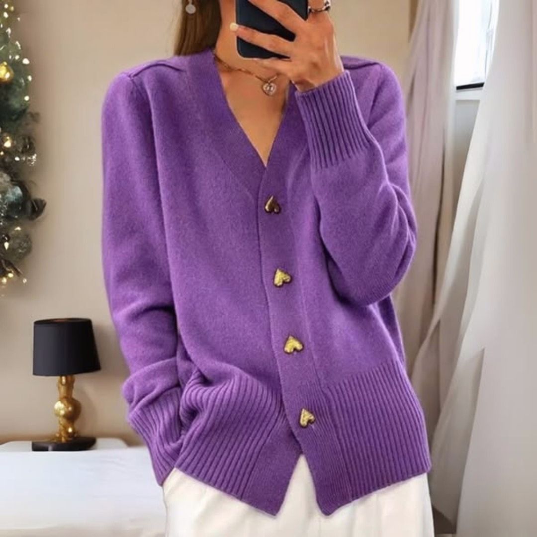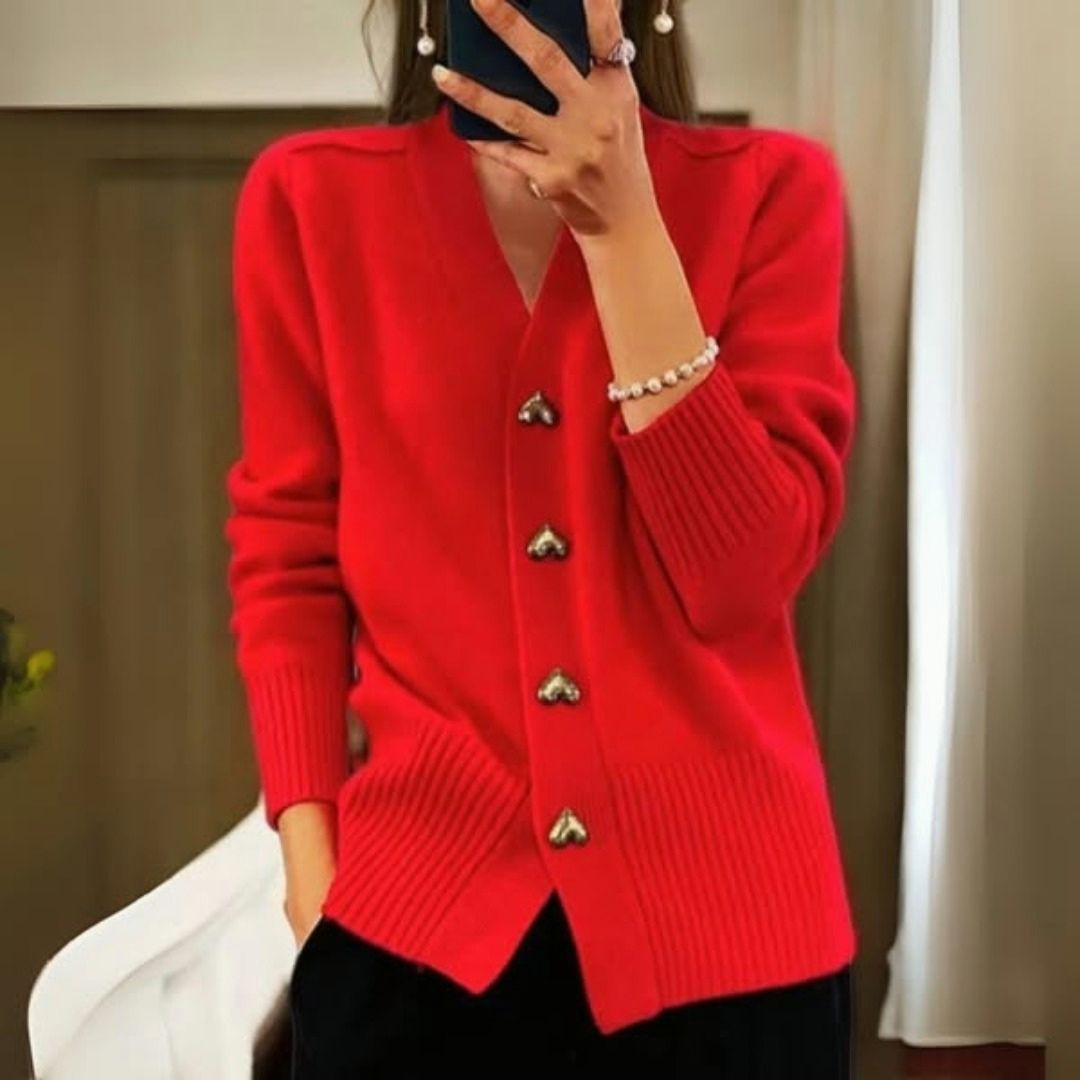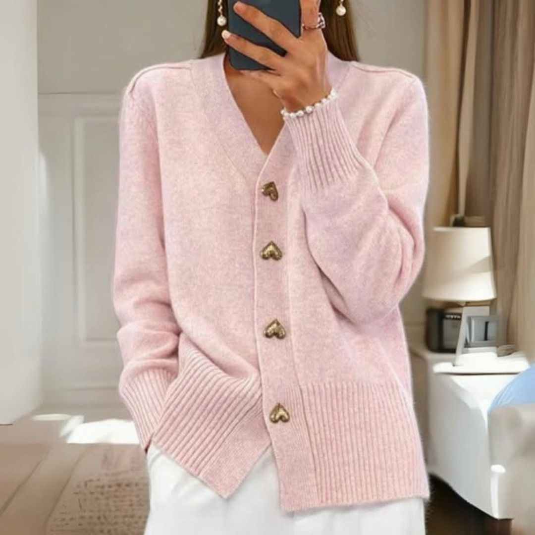 Cardigan élégant à boutons en forme de cœur