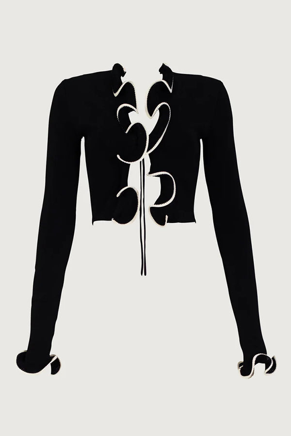 Cardigan en maille à volants confortable avec détail noué sur le devant