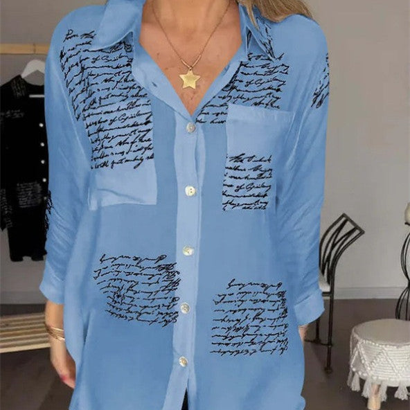 Chemise à Imprimé Lettre Manches Longues – VibrStyle