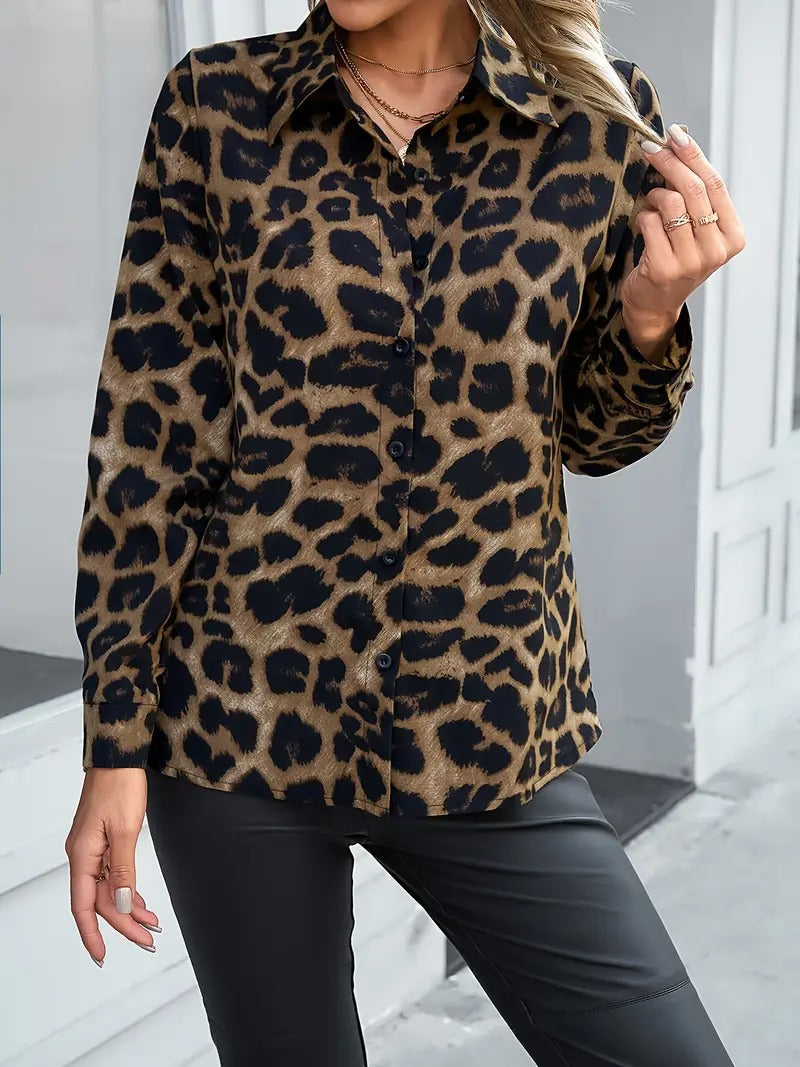 Chemise Boutonnée À Col Polo Imprimé Léopard