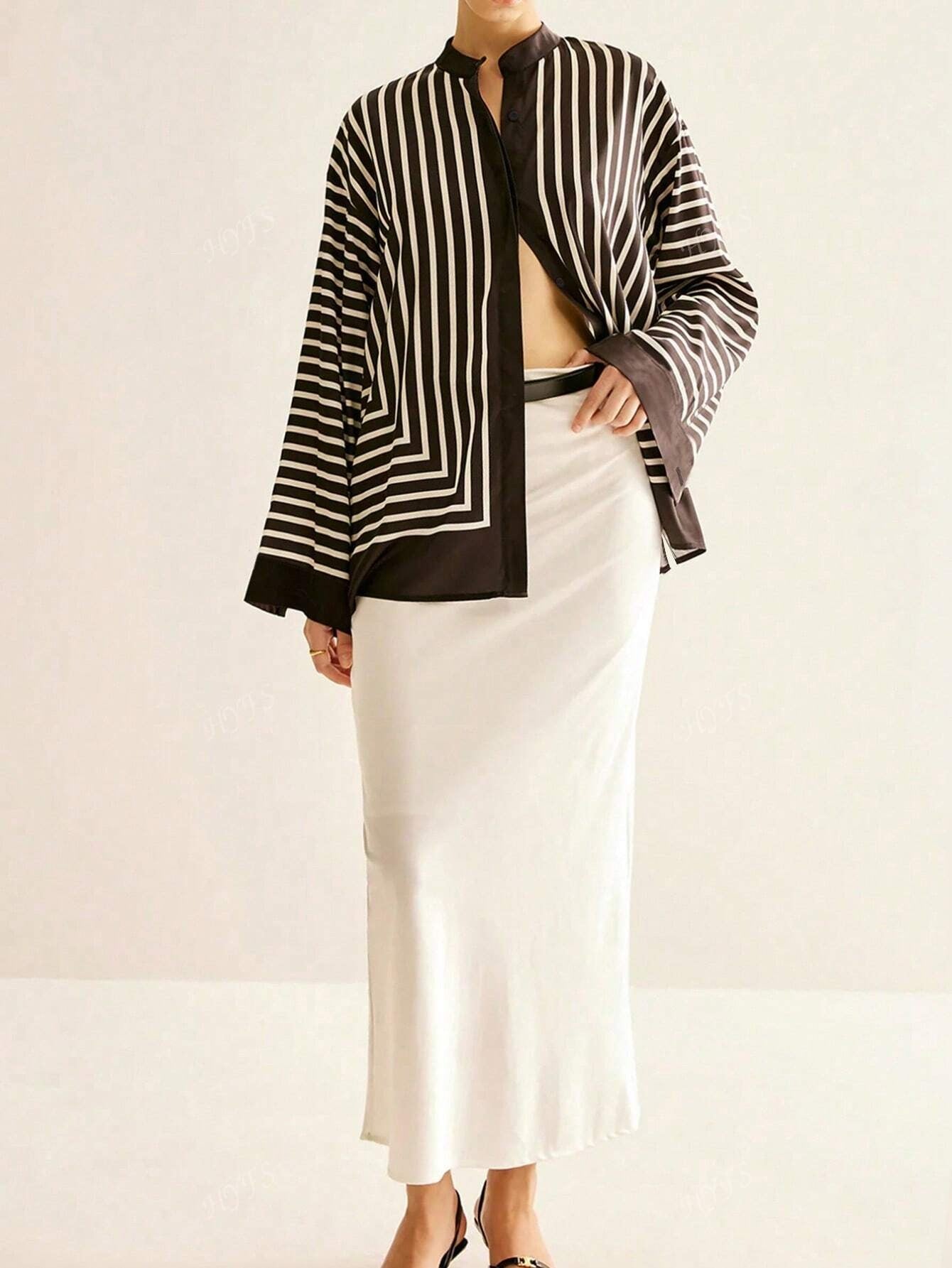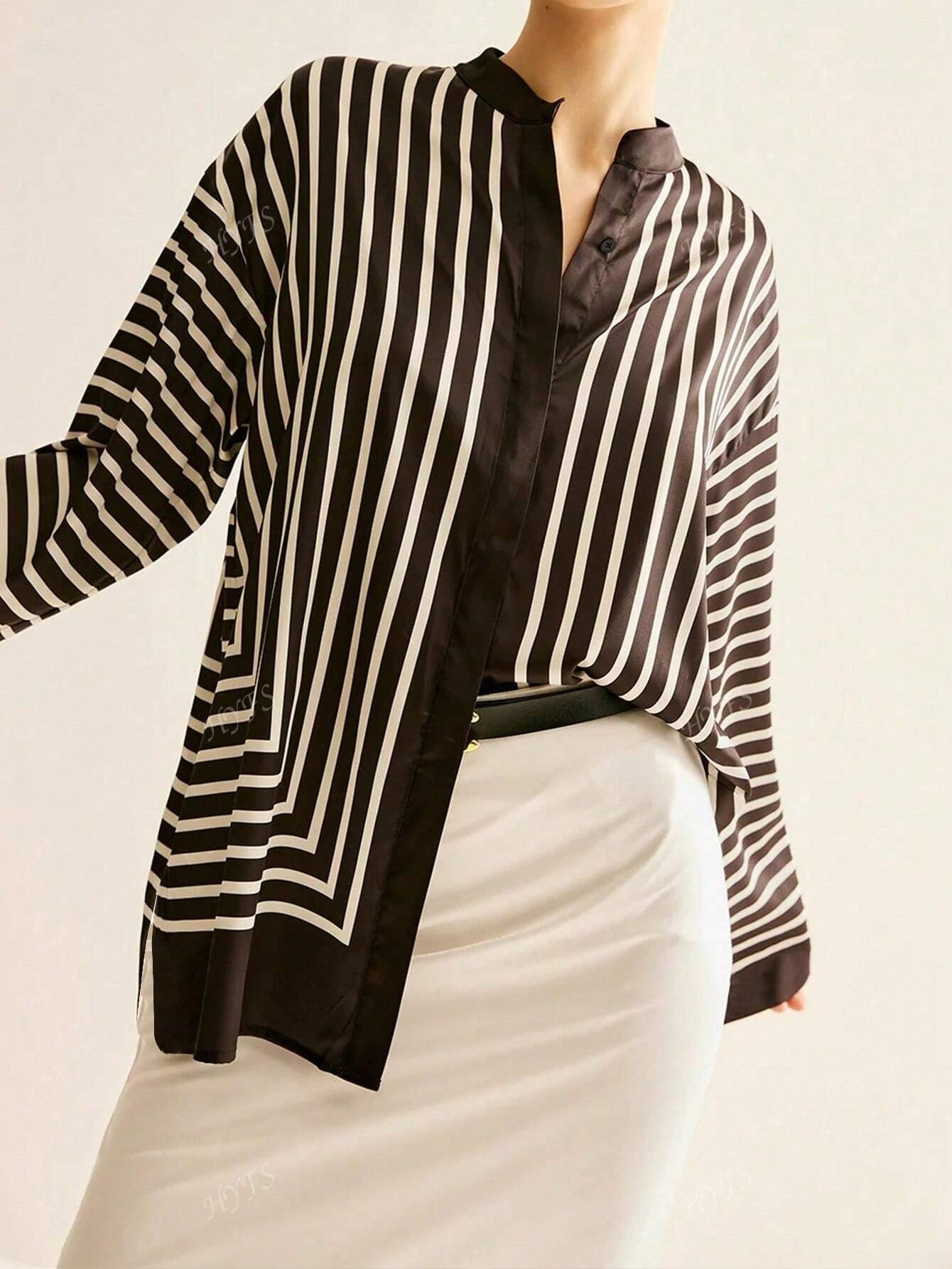 Conçue pour sublimer toutes les morphologies, cette chemise à rayures fendues combine une allure chic et un confort absolu.
