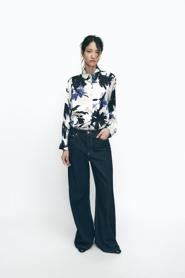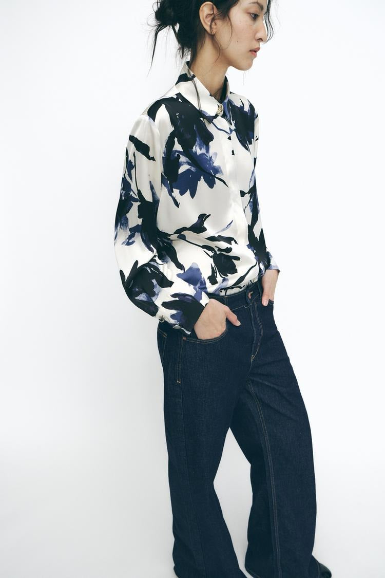 Chemise fluide en satin imprimé