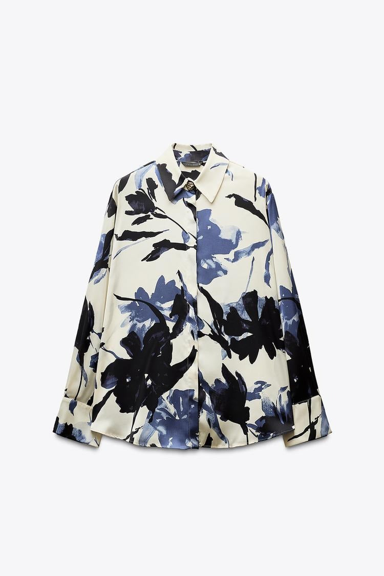 Conçue dans un satin doux et fluide, cette chemise imprimée incarne un style raffiné au quotidien. Son col à revers classique, ses manches longues et sa fermeture boutonnée discrète à l’avant lui confèrent une allure élégante et épurée — idéale aussi bien pour un look professionnel que décontracté.
