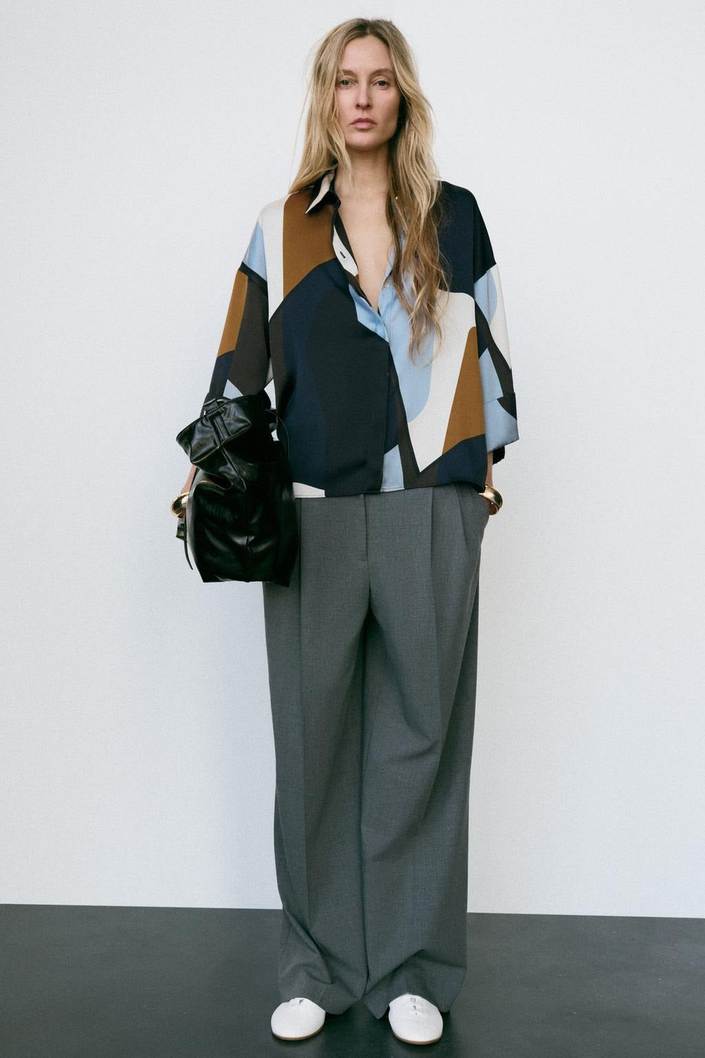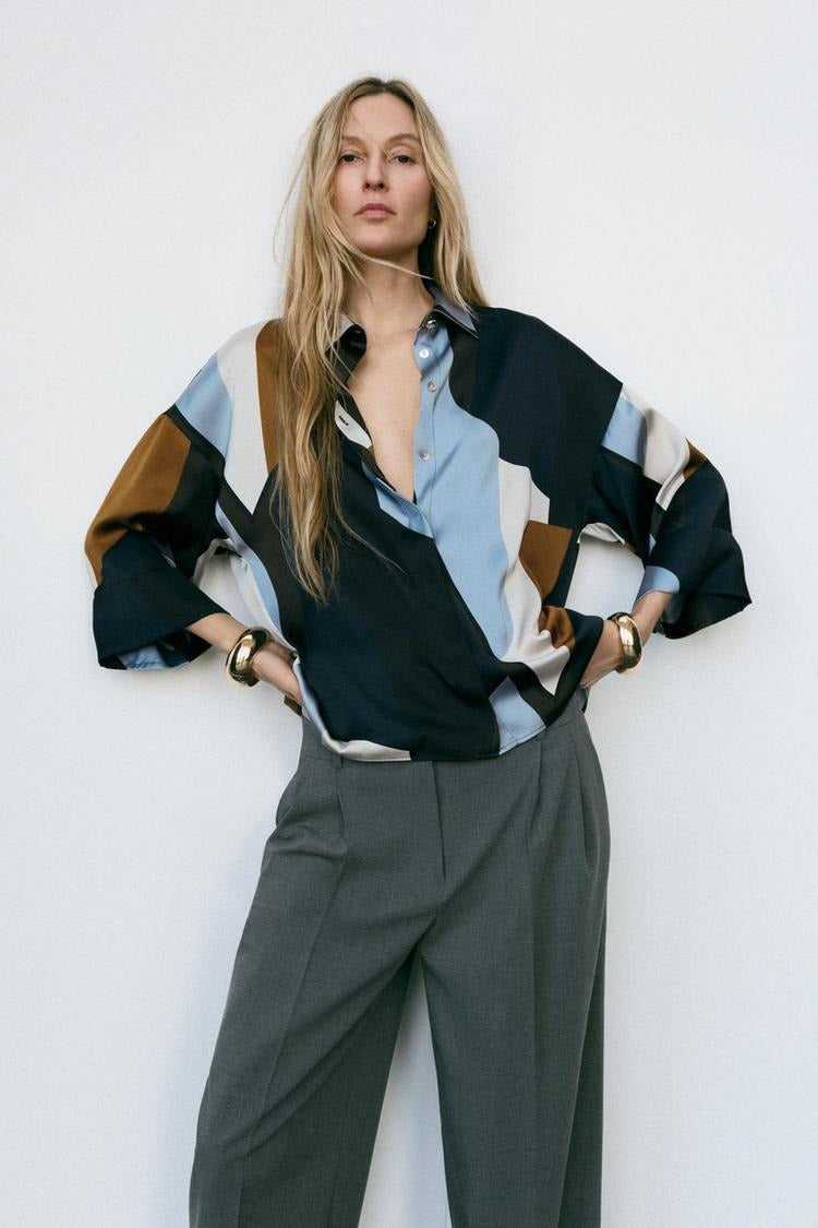 Alliant élégance et fluidité, cette chemise satinée se distingue par son imprimé raffiné et sa coupe moderne. Son col à revers, ses manches larges 3/4 retroussées et sa fermeture discrète par boutons cachés sous rabat en font une pièce aussi chic que confortable, parfaite pour rehausser vos looks quotidiens ou de soirée.