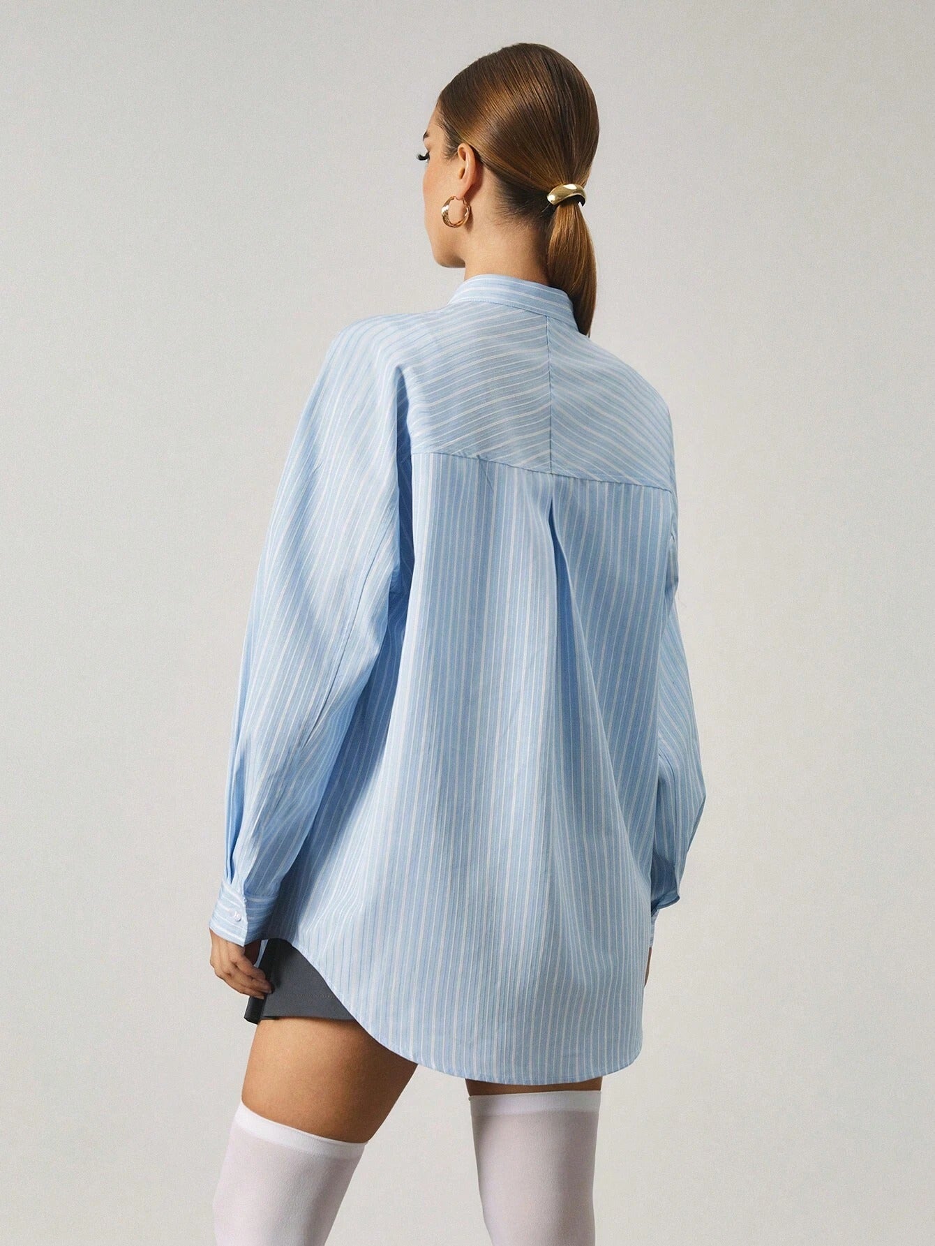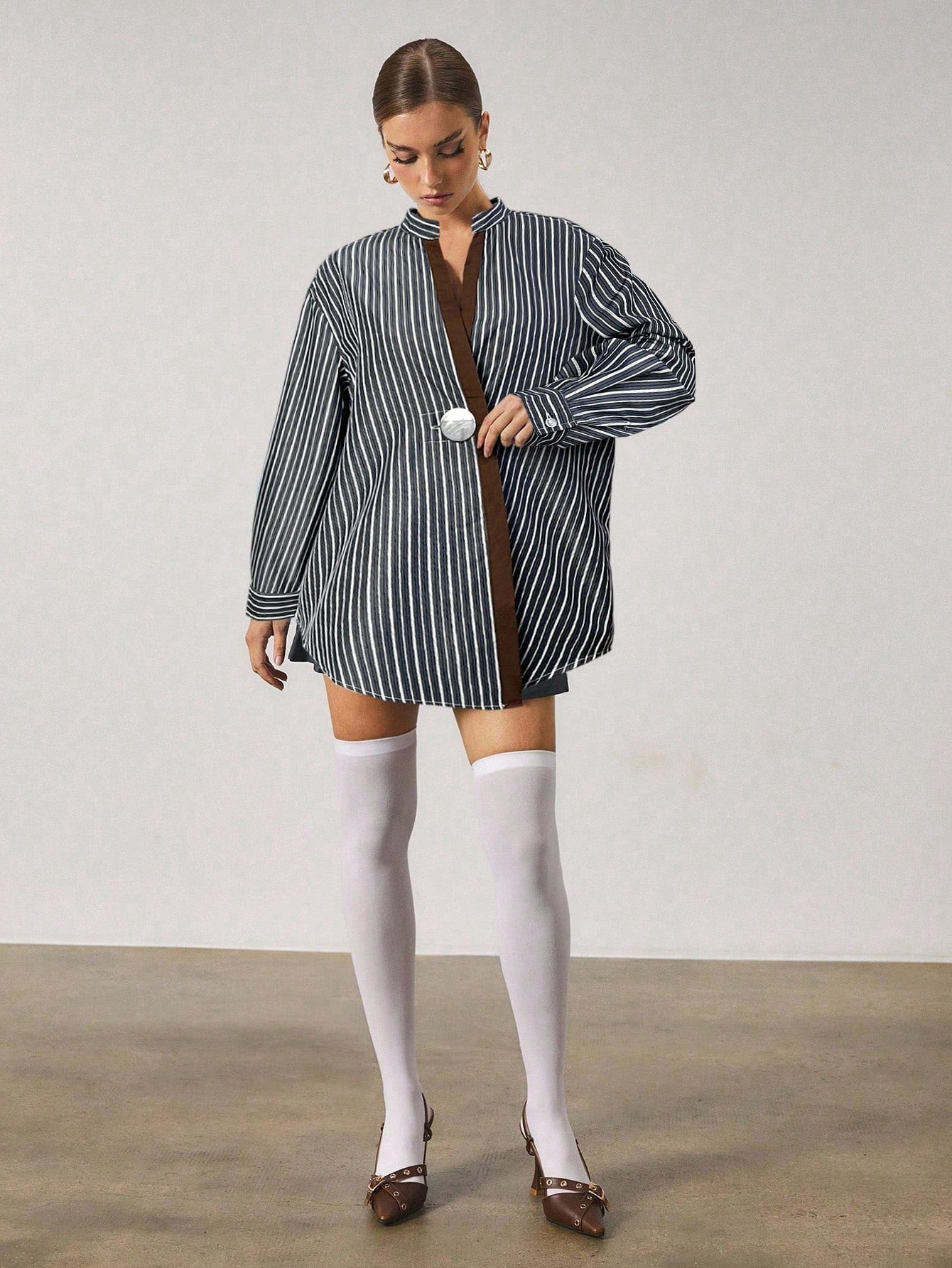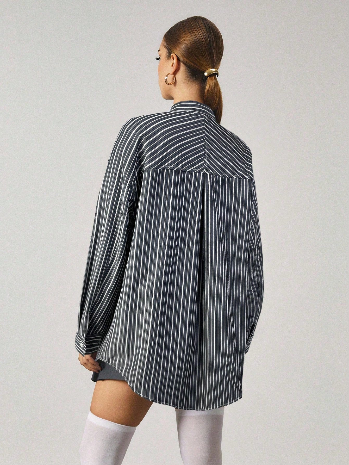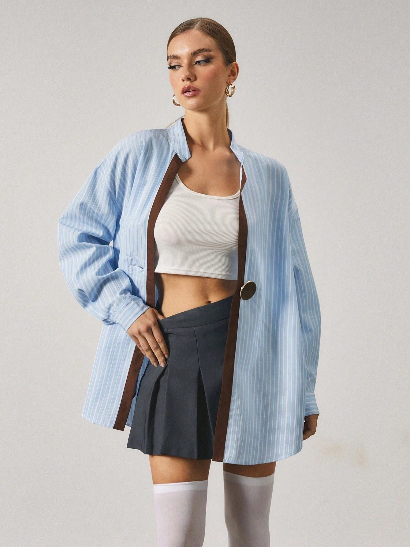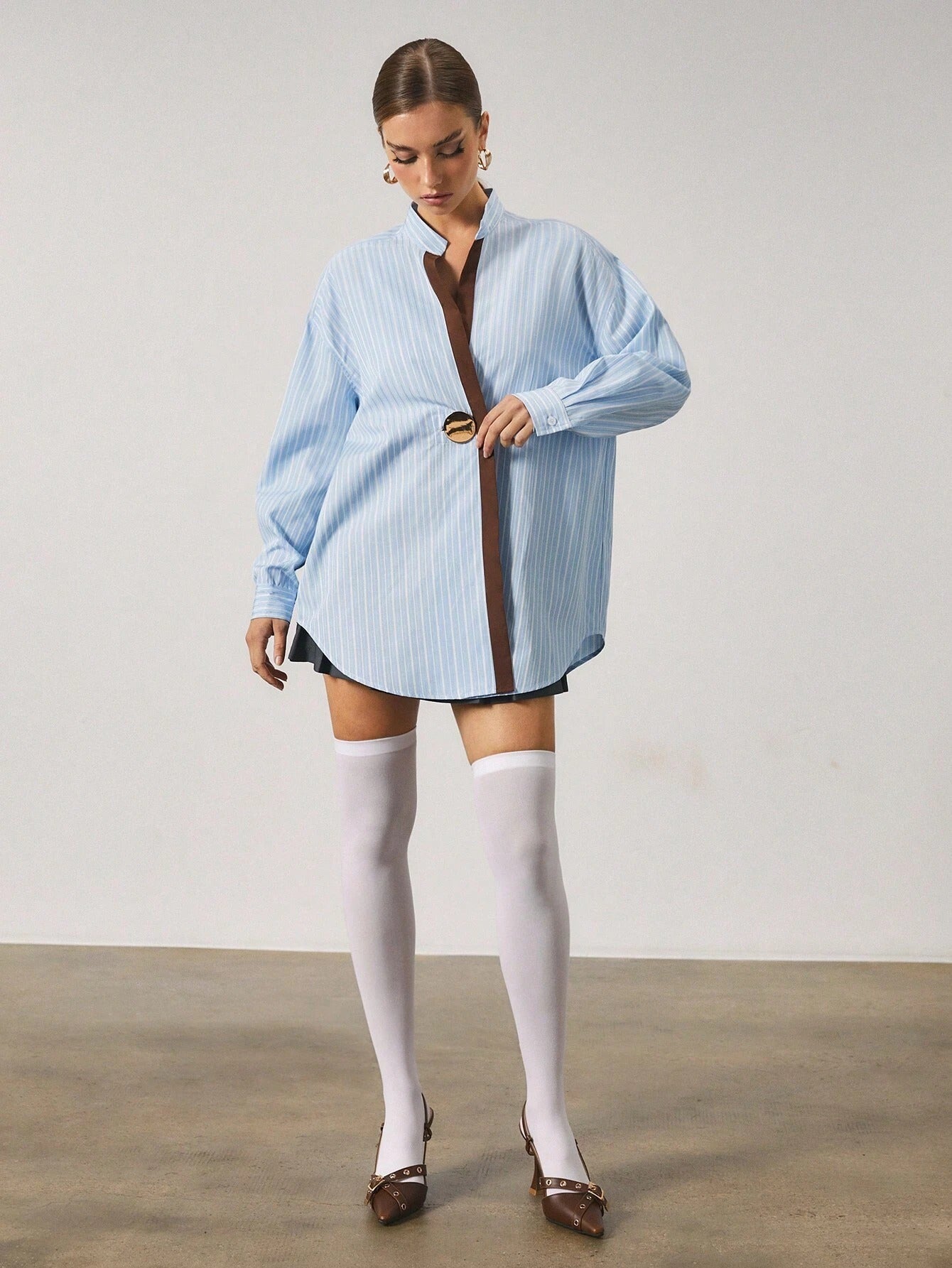 Chemise longue à rayures, pensée pour allier confort et élégance au quotidien. Sa coupe droite et ses manches longues avec poignets en métal apportent une touche originale à une pièce classique, idéale pour les saisons douces, que ce soit pour une journée de travail, une balade urbaine ou une sortie habillée.