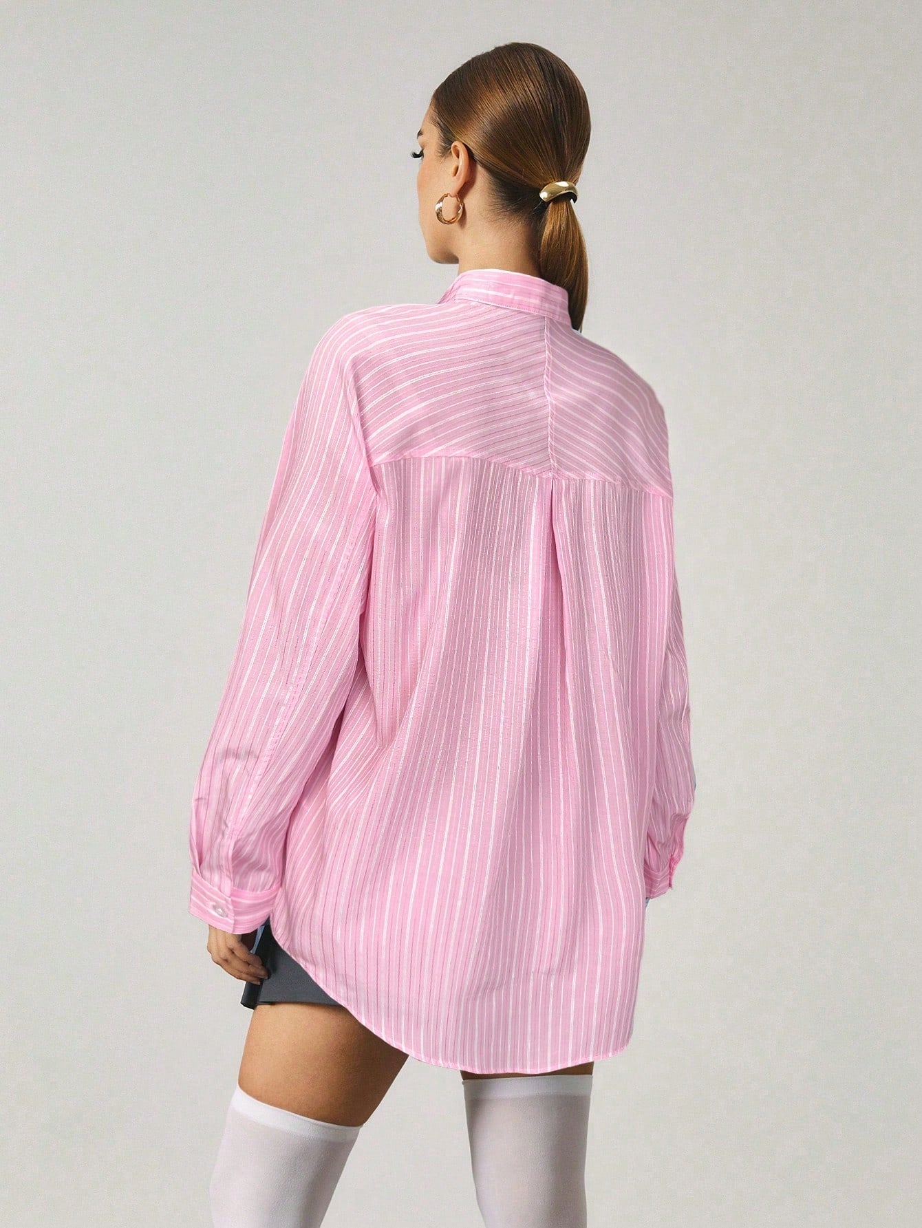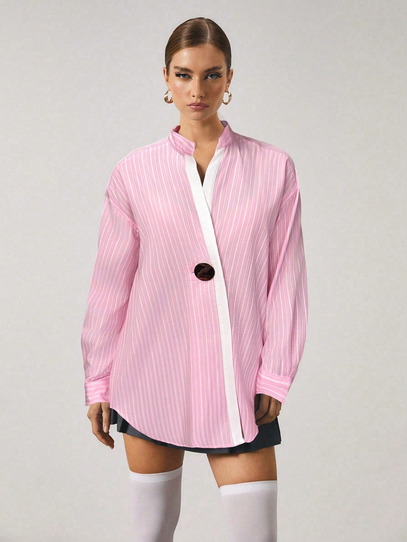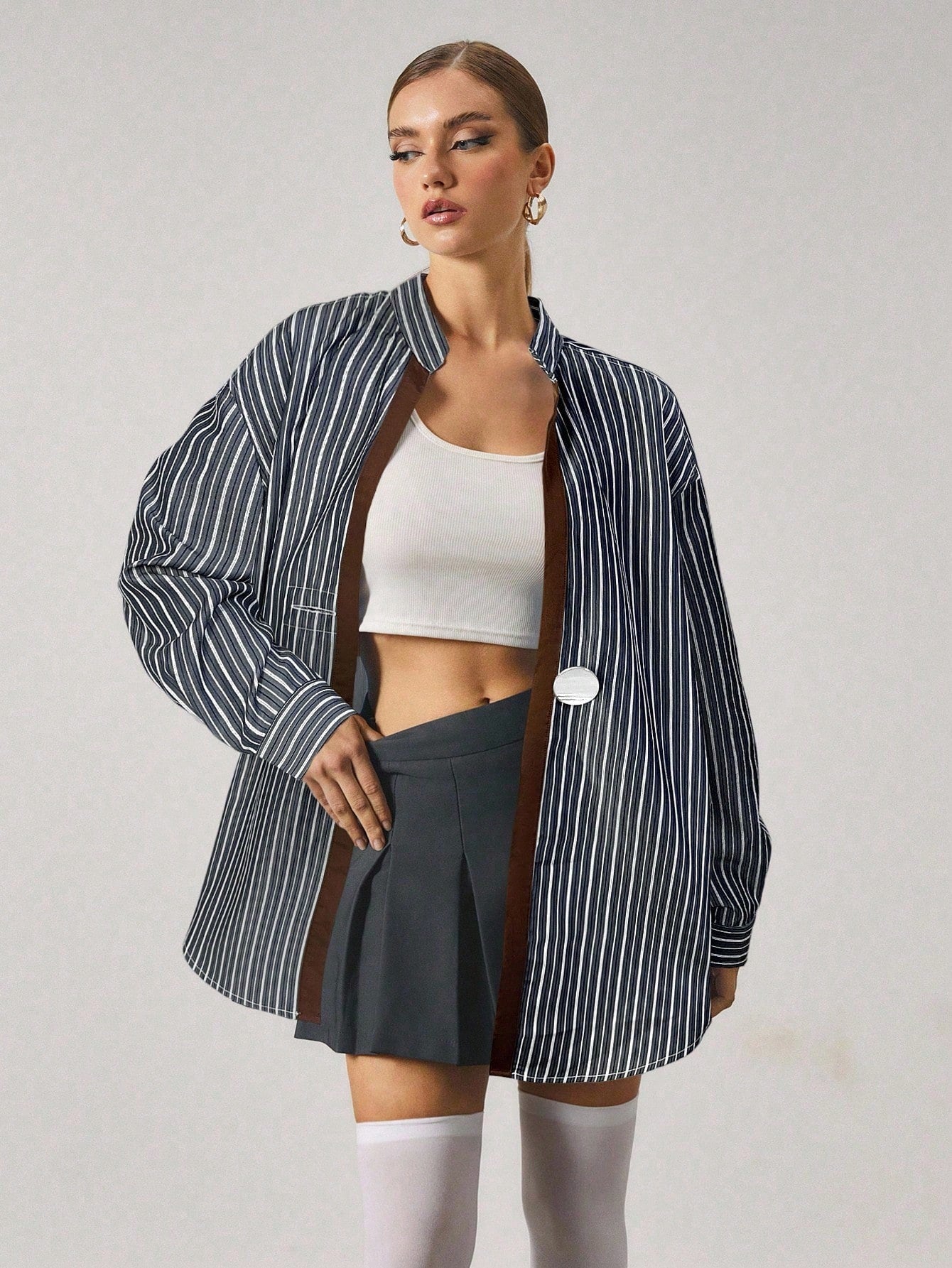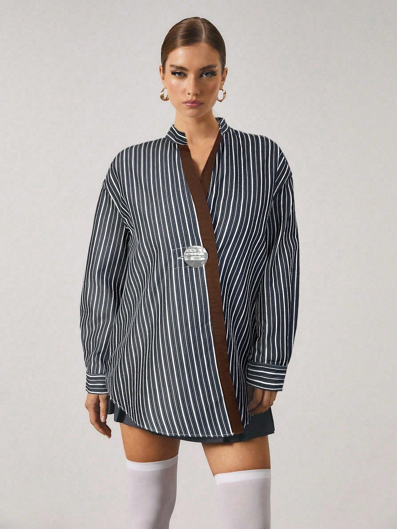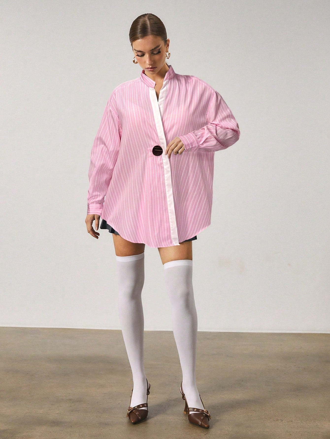 Chemise longue à rayures, pensée pour allier confort et élégance au quotidien. Sa coupe droite et ses manches longues avec poignets en métal apportent une touche originale à une pièce classique, idéale pour les saisons douces, que ce soit pour une journée de travail, une balade urbaine ou une sortie habillée.