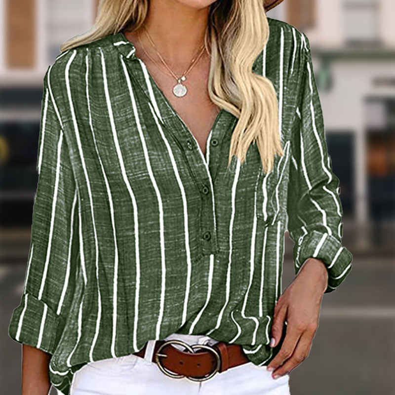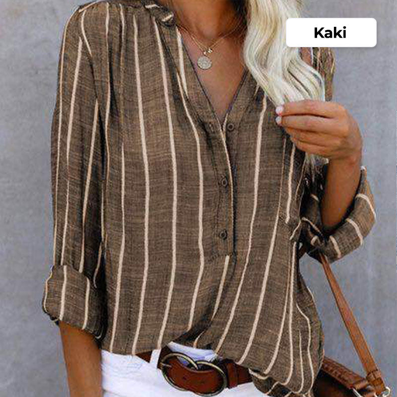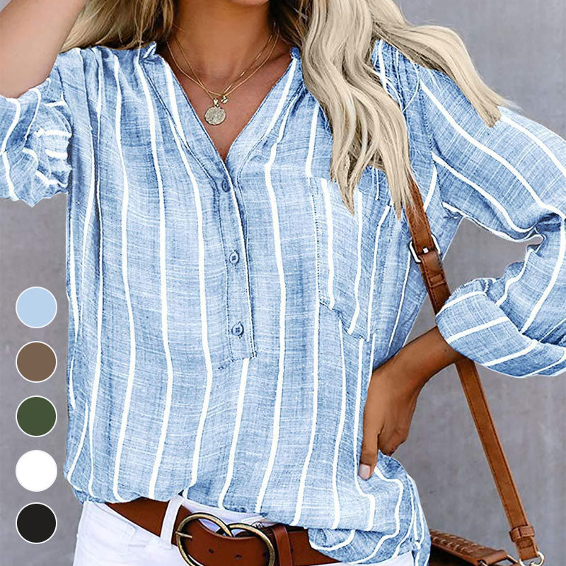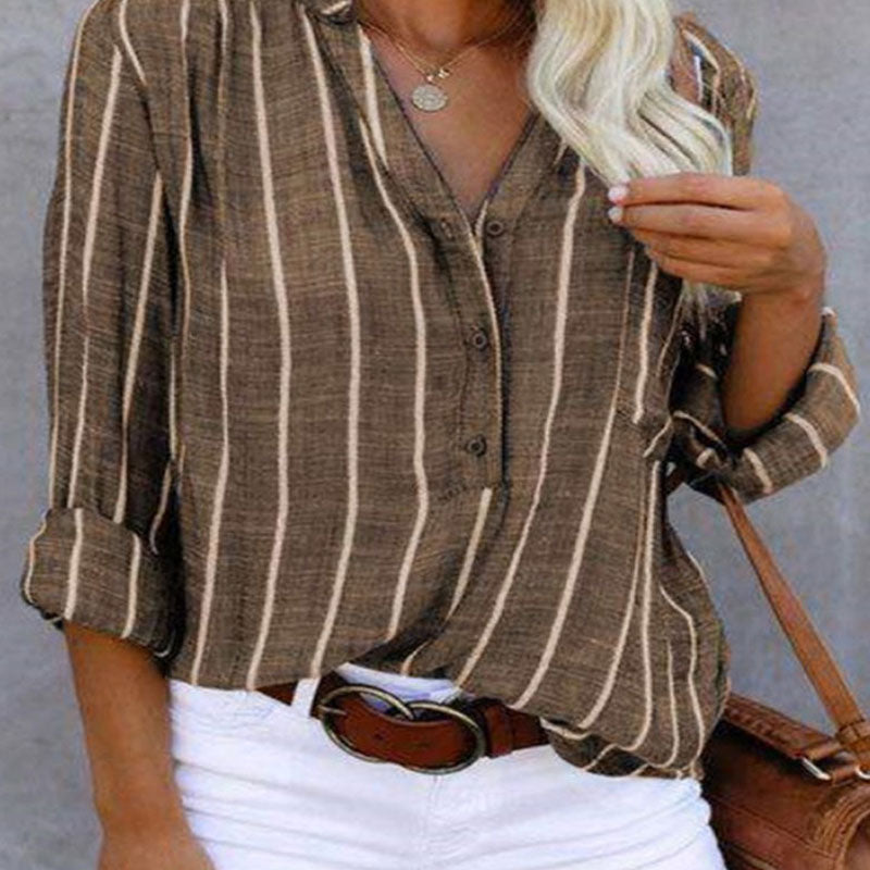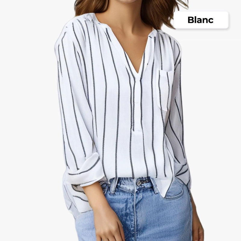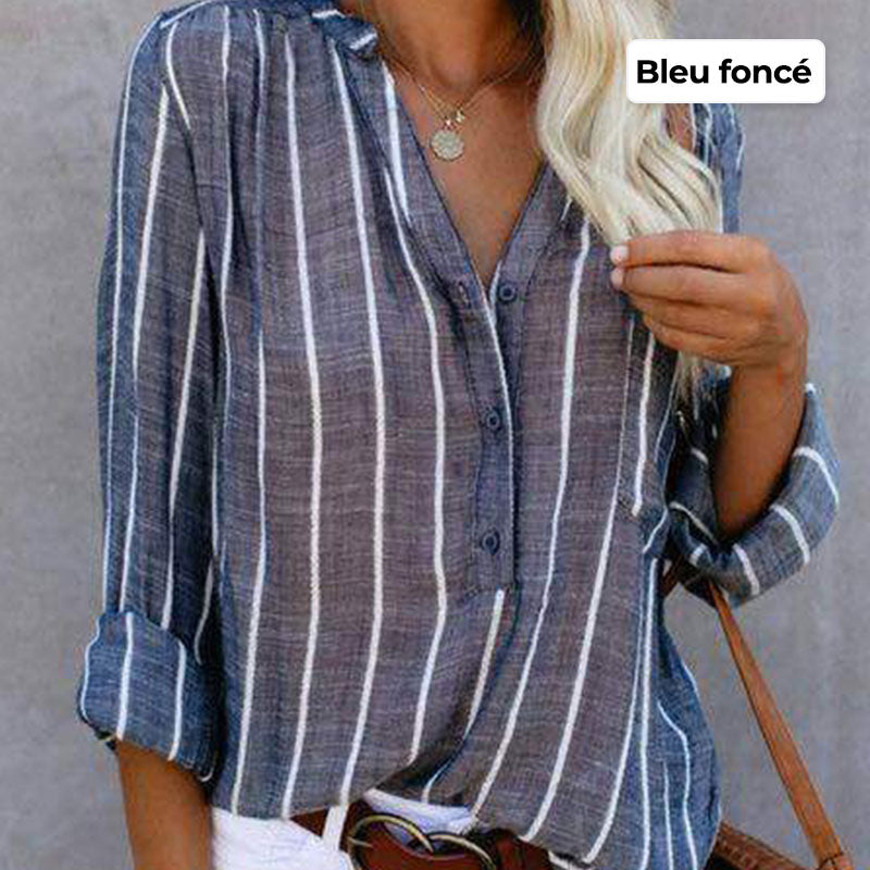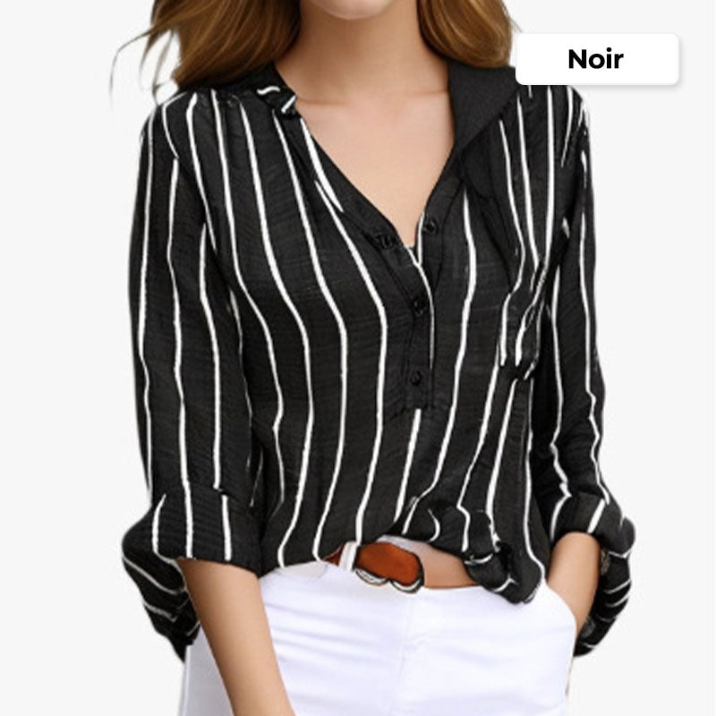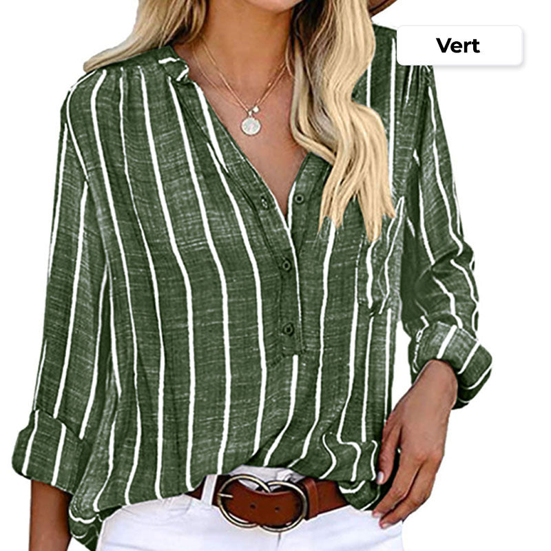 Chemisier à Manches Longues à Rayures Verticales pour Femmes