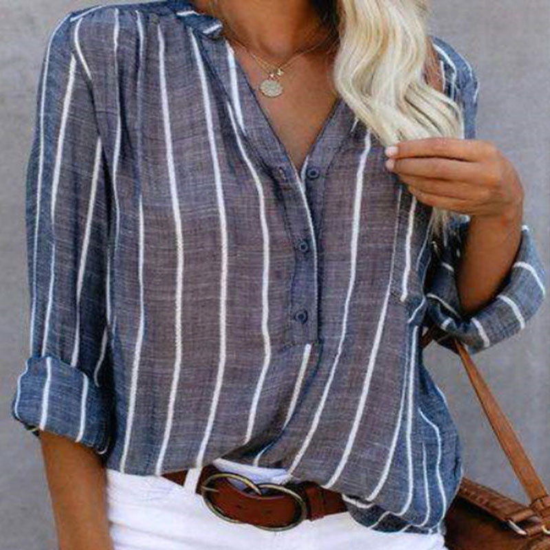 Le paquet comprend : 1* Chemisier à Manches Longues à Rayures Verticales pour Femmes