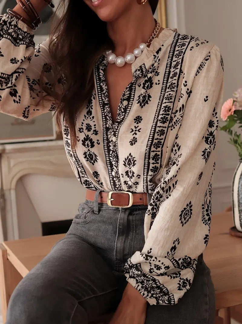 Adoptez un esprit libre et stylé avec ce chemisier ample à imprimé boho. Sa coupe fluide offre un confort absolu, tandis que les motifs bohèmes apportent une touche de caractère et d’évasion. Parfait pour créer des looks décontractés au charme naturel.