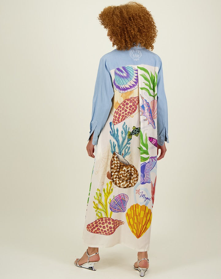 Ce chemisier long se distingue par son imprimé patchwork original et ses détails utilitaires. Avec sa coupe ample et ses grandes poches plaquées, il combine style et fonctionnalité pour un look décontracté mais affirmé. Idéal en superposition sur une tenue simple pour apporter de la personnalité, il est parfait pour les saisons de transition.