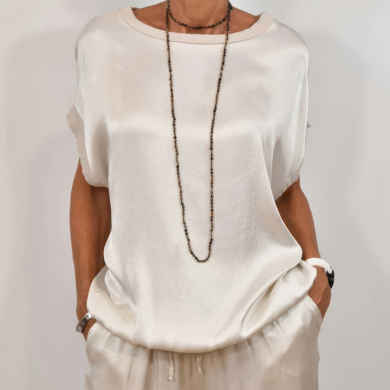 - Haut : Blouse ample avec manches courtes et décolleté arrondi