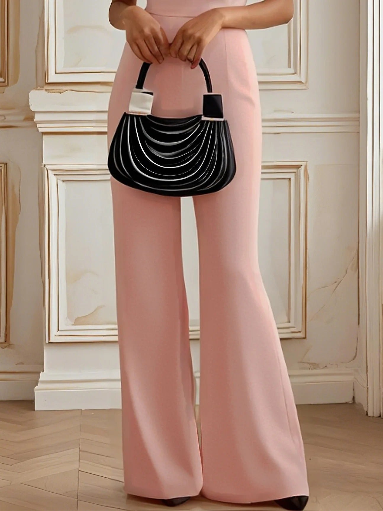 Affirmez votre style avec cette combinaison urbaine noire, à la fois chic et intemporelle. Son col bateau met en valeur les épaules avec élégance, tandis que sa coupe classique et sa ceinture nouée à la taille dessinent une silhouette structurée et féminine.