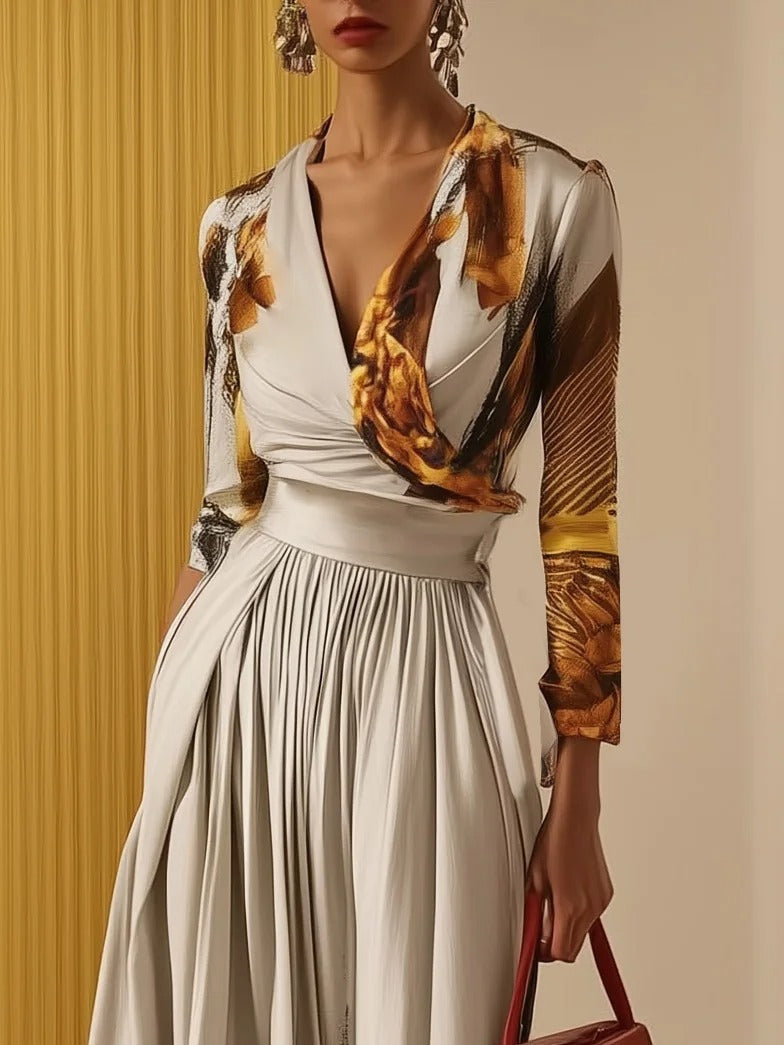 Col en V et manches longues : équilibre parfait entre féminité et élégance.
