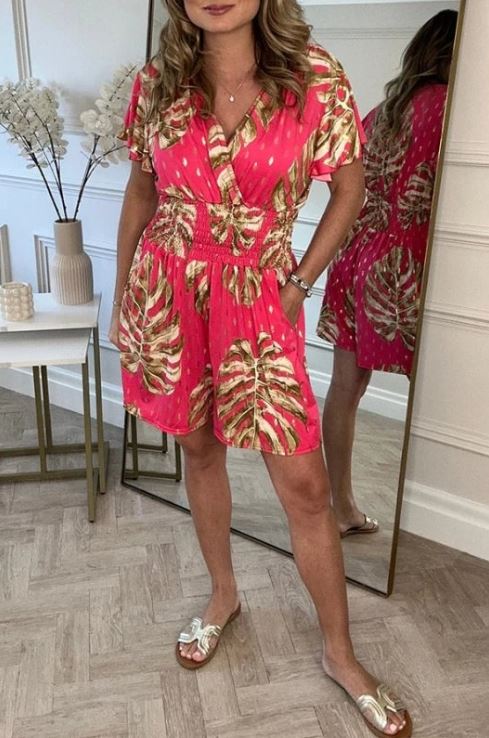 Améliorez votre style décontracté avec cette charmante combinaison fleurie à pois avec poches. Ce vêtement uni allie parfaitement motifs floraux et pois, offrant un look ludique et tendance pour diverses occasions. Les poches ajoutent fonctionnalité et élégance à cette tenue chic.