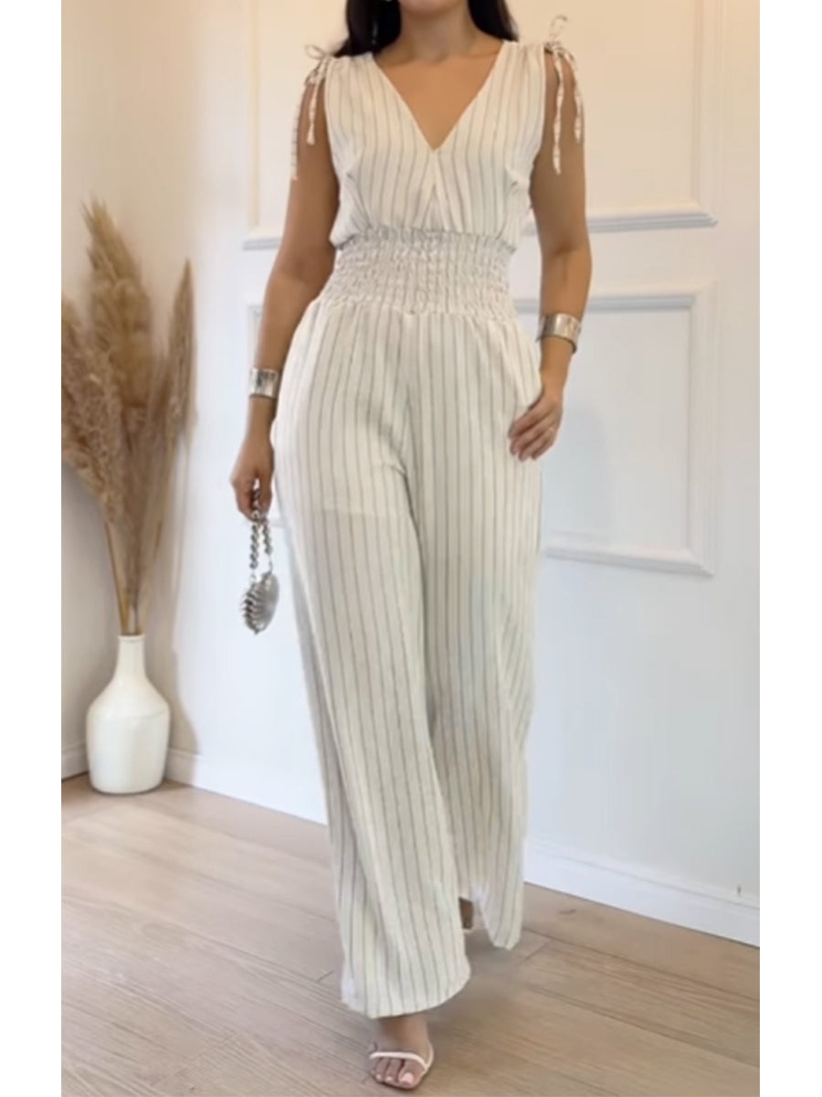 Combinaison sans manches en coton et lin, à rayures élégantes, pensée pour allier style et confort. Sa coupe fluide et légère la rend idéale pour les journées ensoleillées, tandis que son design épuré met en valeur la silhouette.