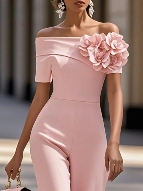 Combinaison urbaine à épaules dénudées et motif floral 3D