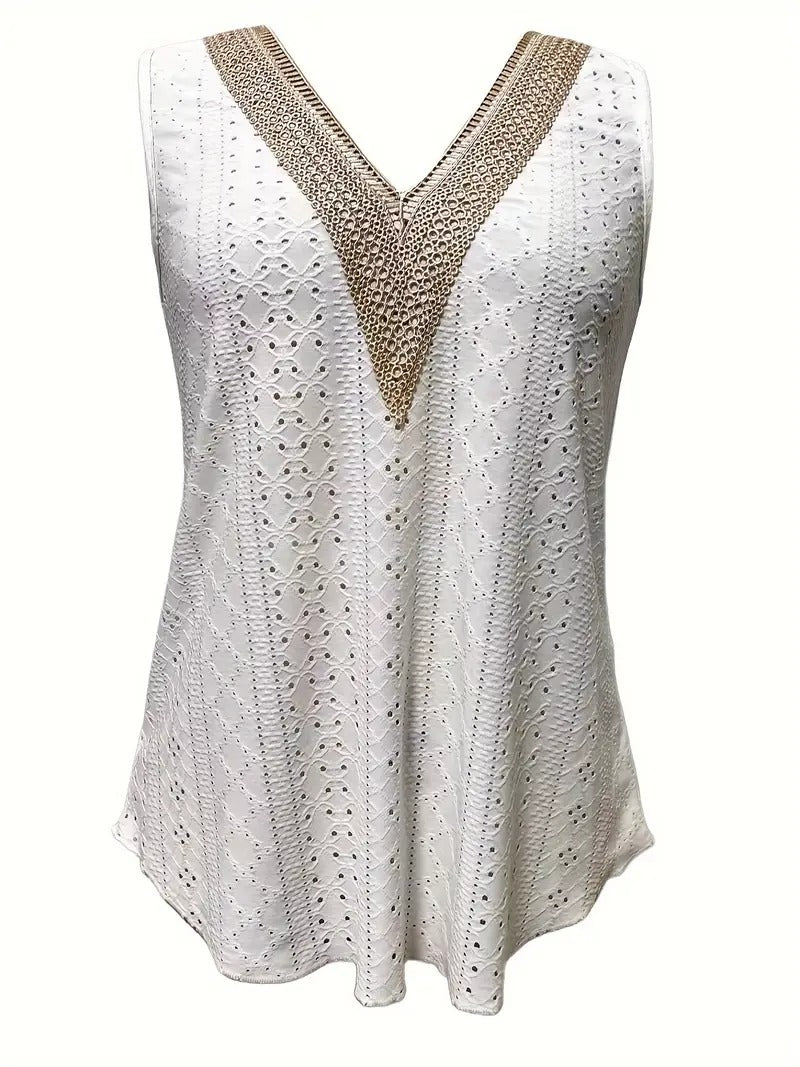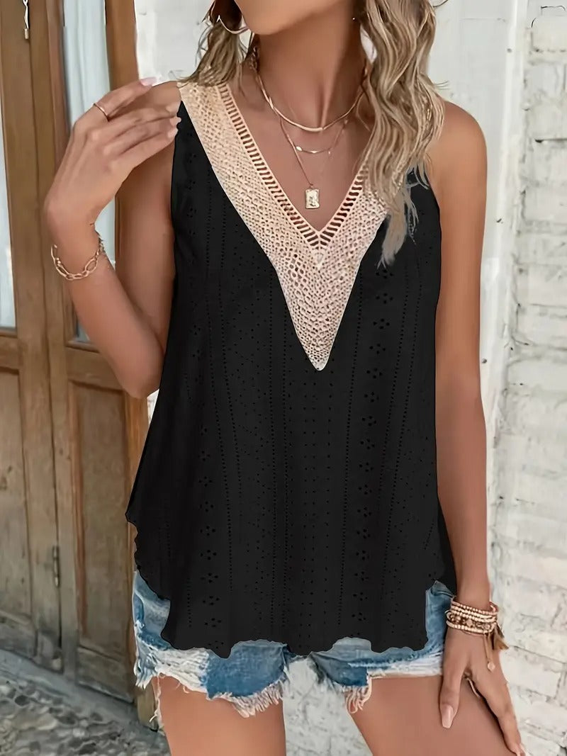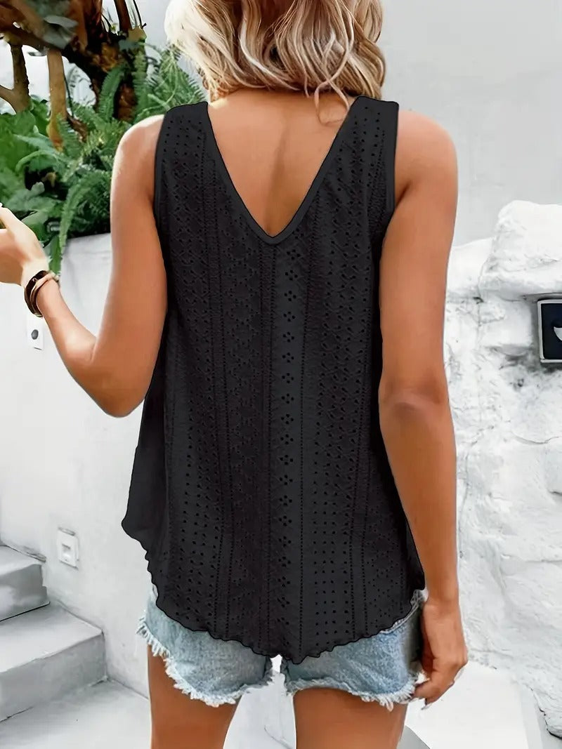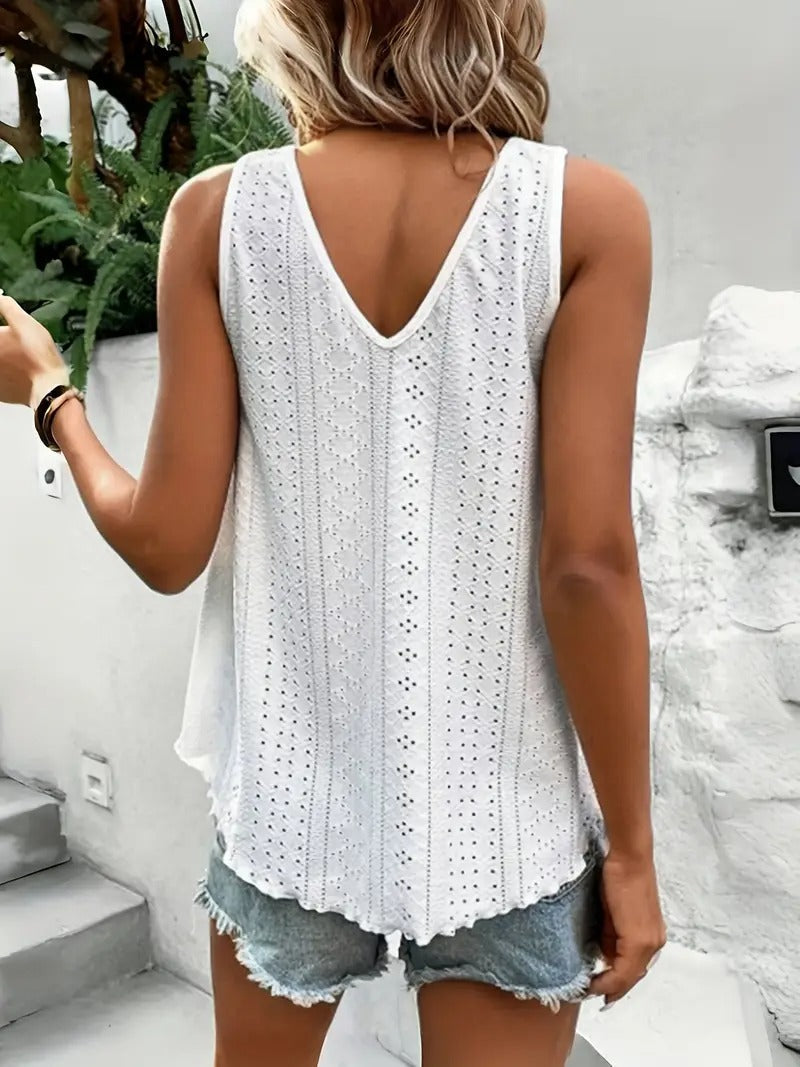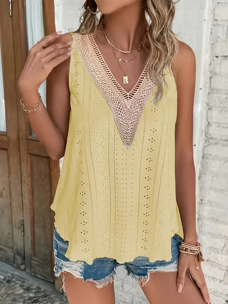 Débardeur décontracté à col en V en broderie