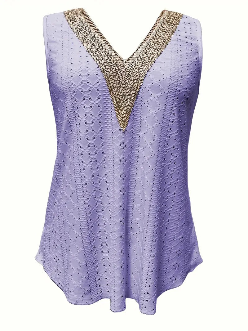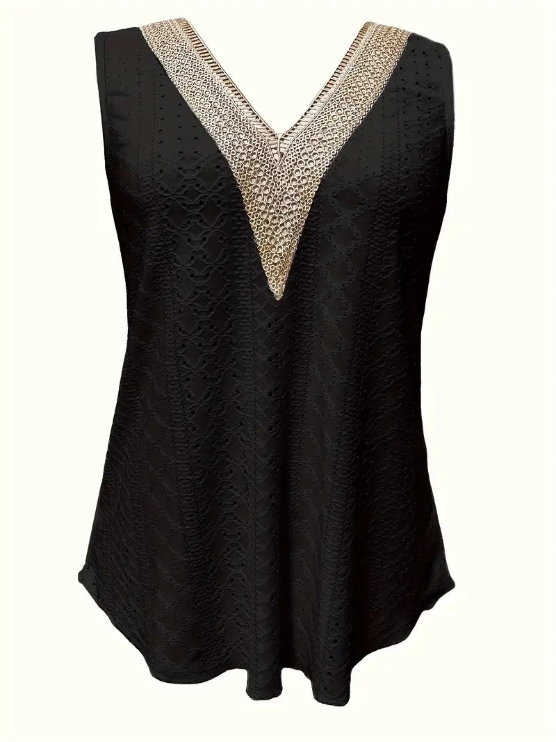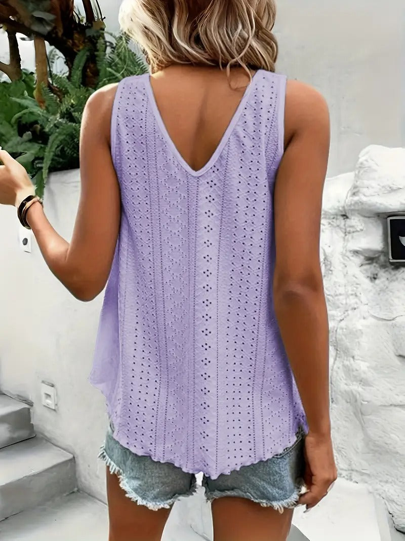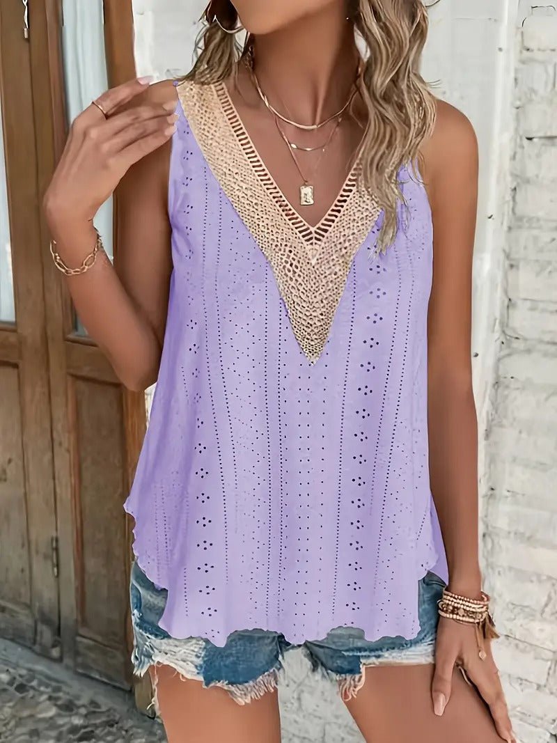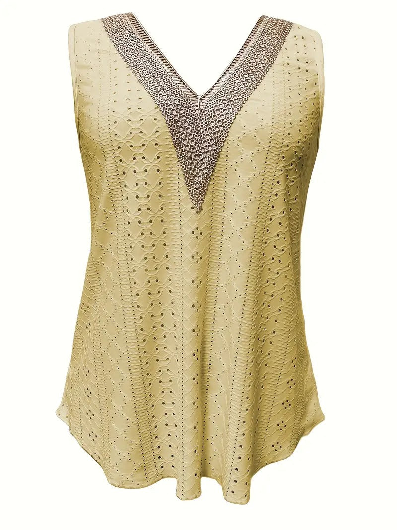 Débardeur décontracté à col en V en broderie
